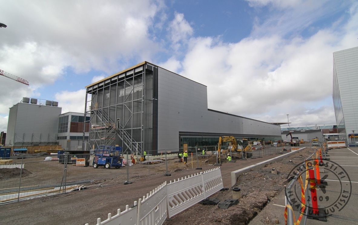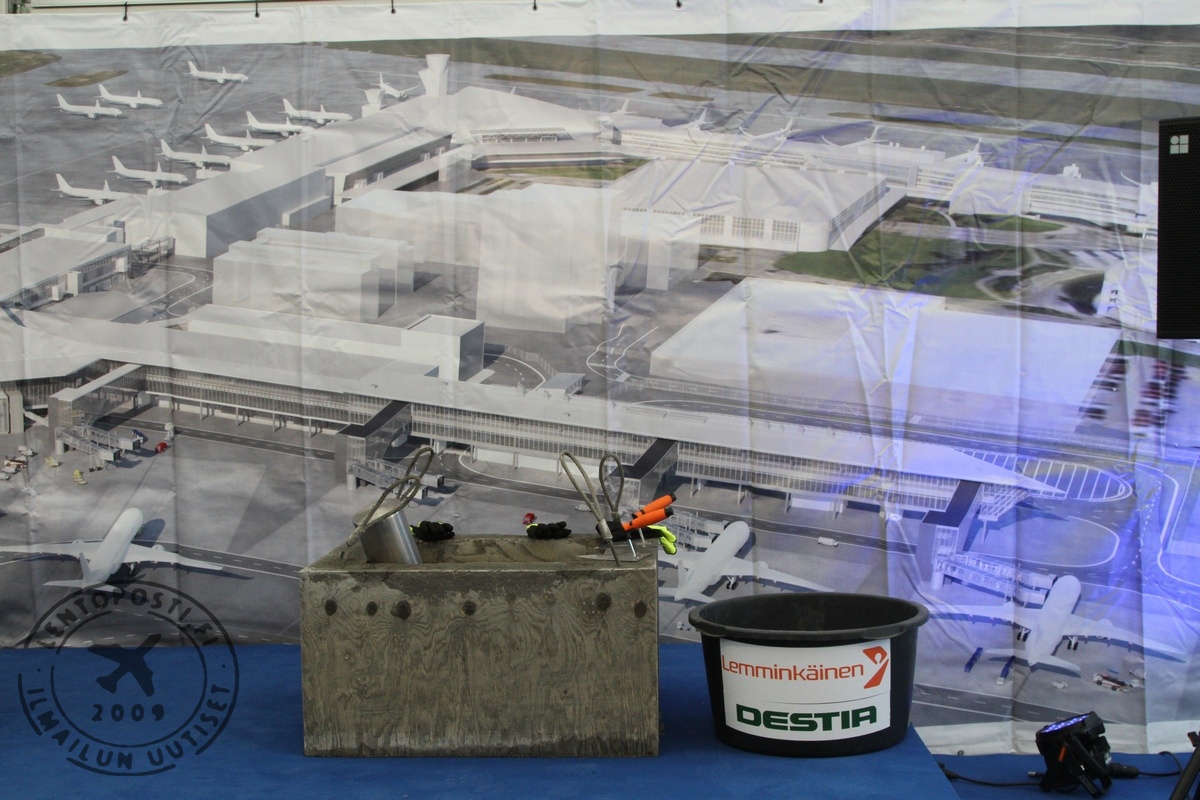 Se päätynee juhlateltan lavalta nosturin avulla johonkin sopivaan koloon terminaalilaajennuksen perustusten alle. Nyt rakenteilla oleva ensimmäinen laajennusosa ulottuu nykyisen Non-Schengen-terminaalin lounaispäädystä lähes Tietotielle asti. Työmaan alta on purettu useita rakennuksia. Käyttöön ensimmäinen vaihe saadaan kesällä 2017. Lentoaseman laajennushanke toteutetaan hankalissa oloissa keskellä jatkuvasti pyörivää vilkasta lentoliikennettä. Työmaat aiheuttavat väistämättä haittoja matkustajaviroille. Ne pyritään kuitenkin minimoimaan. Kun länsisiiven laajennusvaihe käynnistyy, useita nykyisiä laajarunkokoneiden matkustajasiltoja katoaa väliaikaisesti työmaan alle. Tämä tietää lisääntyviä bussikuljetuksia kaukokohteisiin matkustaville, koska koneita joudutaan pysäköimään ulkopaikoille kauemmas asematasolle. T.T. Jo seitsemäs laajennus Helsinki-Vantaan lentoasemaa laajennetaan sen 64-vuotisen olemassa olonsa aikana nyt seitsemättä kertaa. Kyse on tällä kertaa jätti-investoinnista. Tammikuussa käynnistyneiden kehitysohjelman laajennustöiden kustannusarvio on noin 400 miljoonaa euroa. Kaiken kaikkiaan Finavian, noin 900 miljoonan euron rakennushanke on yksi Suomen suurimmista.