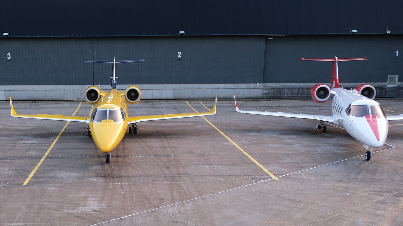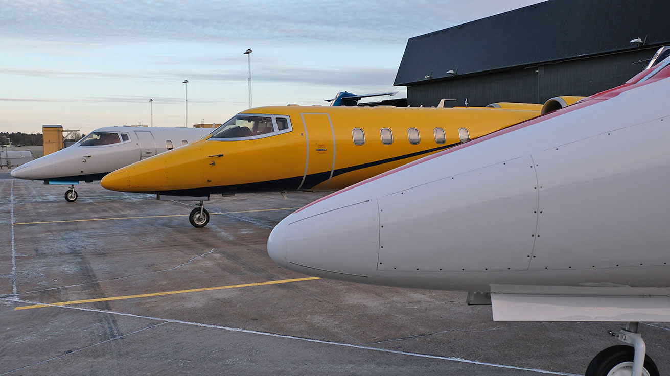 Ruotsin FMV T&E:n (Test & Evaluering) aiemmin käyttämät keltaiset Learjet 35 -liikesuihkukoneet on valmistettu 1970-luvulla. Niiden elinkaari alkaa olla loppupuolella ja varaosien saatavuus on jo rajallista. Vuodesta 2021 lähtien FMV T&E on lentänyt Learjeteillä sotilasilma-aluksina (SE-DHO, 35-195 ja SE-DHP, 35-075).