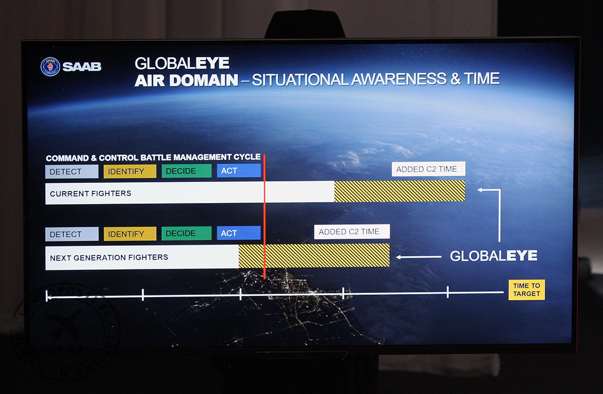 GlobalEye perustuu Bombardier Global 6000 -liikesuihkukoneeseen. Kyseessä on jo neljäs tuotantoalusta ruotsalaisvalmistajan tutkavalvontakoneille. Uusi tyyppi tarjoaa kaivatun pitkän, jopa 11 tunnin toiminta-ajan sekä suuren matkanopeuden siirtymisiin.