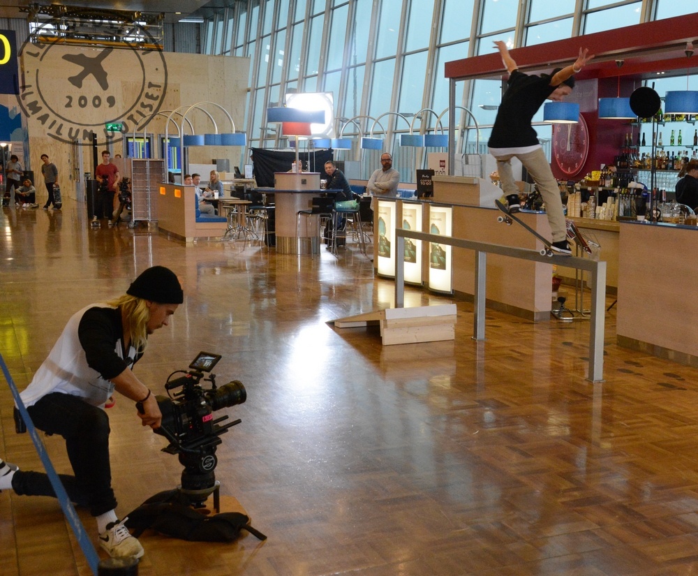 Helsinkiin oli skeittaajien ohella lennätetty myös kansainvälistä lifestyle- ja rullalautailumediaa edustavia toimittajia ja kuvaajia seuraamaan tapahtumaa. Sunnuntaina skeitattiin ja kuvattiin asematasolla terminaalin ja pian purettavien Finnairin tekniikan hangaarien välissä. Esimerkiksi suihkumoottorien virtauksilta rakennuksia suojaava viisto seinämä osoittautui skeittaukseen soveltuvaksi (otsikkokuva).