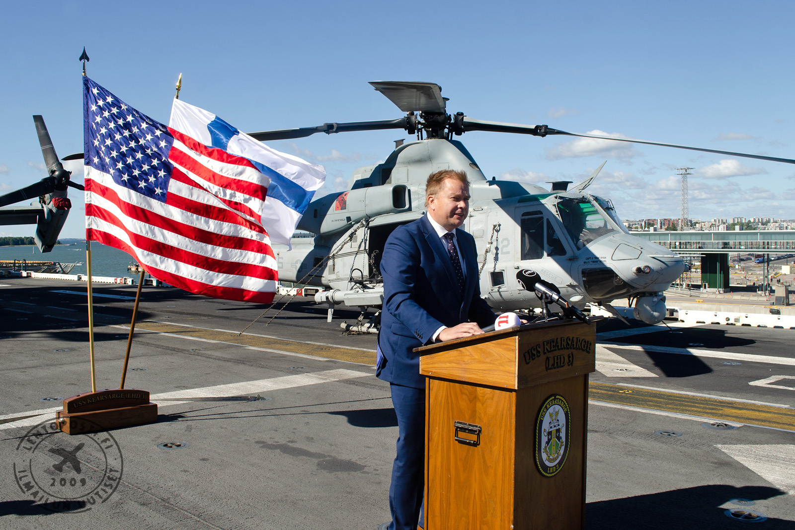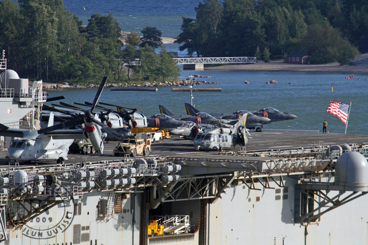 Helsingin satamassa vieraillut Yhdysvaltain laivaston maihinnousutukialus USS Kearsarge (LHD 3) irrottautui Hernesaaren laiturista puoliltäpäivin maanantaina 8. elokuuta. Alus suuntasi pohjoiselle Itämerelle, jossa se harjoittelee USS Gunston Hall (LSD 44) ja USS Arlington (LPD 24) -maihinnousualusten kanssa yhdessä Suomen puolustusvoimien kanssa 19. elokuuta saakka. Lentoposti.fi tutustui jättimäiseen maihinnousualukseen ja sen kalustoon Kearsargen vieraillessa Helsingissä.