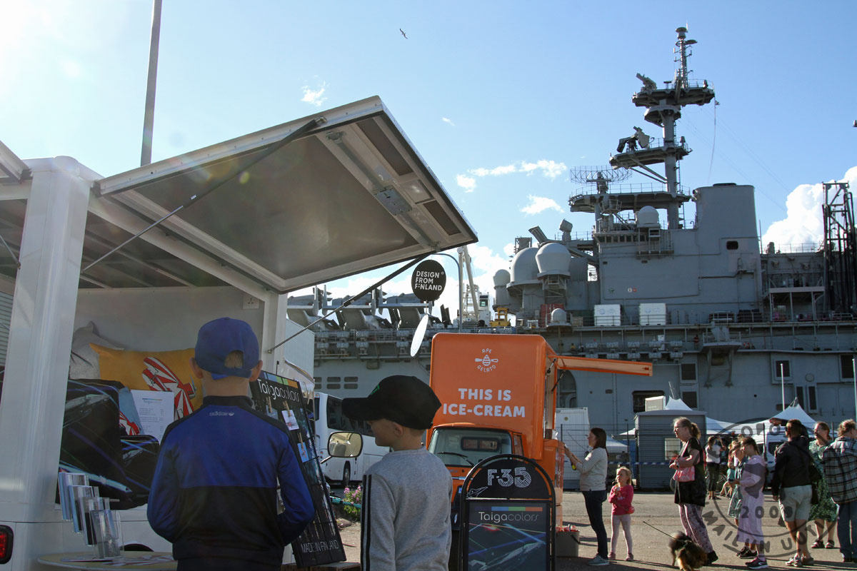 liikenne oli ajoittain jopa tukossa. Myös satama-altaan toisen puolen näköalapaikka ja hissit ruuhkautuivat maihinnousualuksen vierailun aikana. Ihmismassat houkuttelivat satamaan myös tilapäisiä myyntipisteitä, joissa oli tarjolla kahvia, jäätelöä ja ilmailullisia sisustustuotteita.