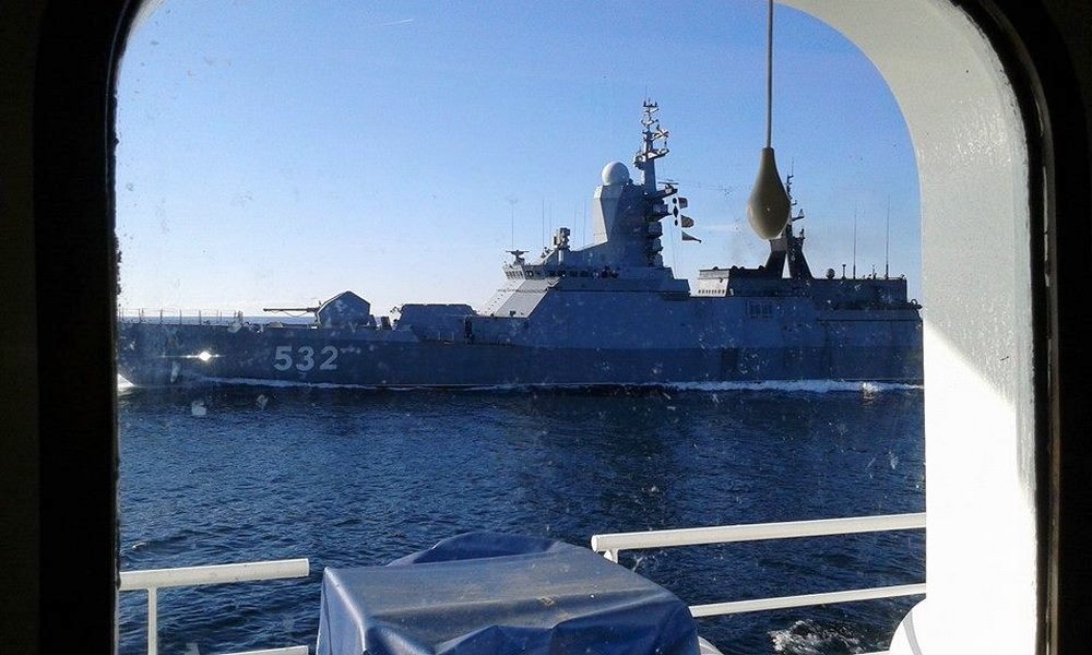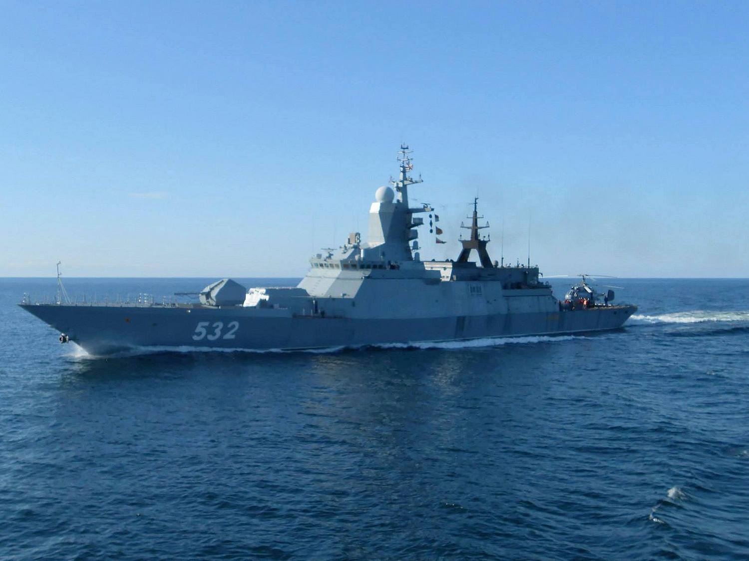 Kopterin toisella lennolla Arandaa kuvattiin ilmasta. Tämän jälkeen myös korvetti otti kurssin suoraan Arandan perää kohden ajaen lopulta ohi hyvin läheltä (kuva alla). Suomalaisalus säilytti tilanteesta huolimatta suuntansa ja vauhtinsa. Arandan hoitovarustamo VG-Shippingin jälkimmäisestä 2. syyskuuta tapauksesta julkaisemien kuvien perusteella kyseessä oli moderni Steregushchy-luokan korvetti Boikiy (runkonumero 532). Sen rakenteissa on tutkaheijastuksen vähentämiseen tarkoitettuja muotoja.