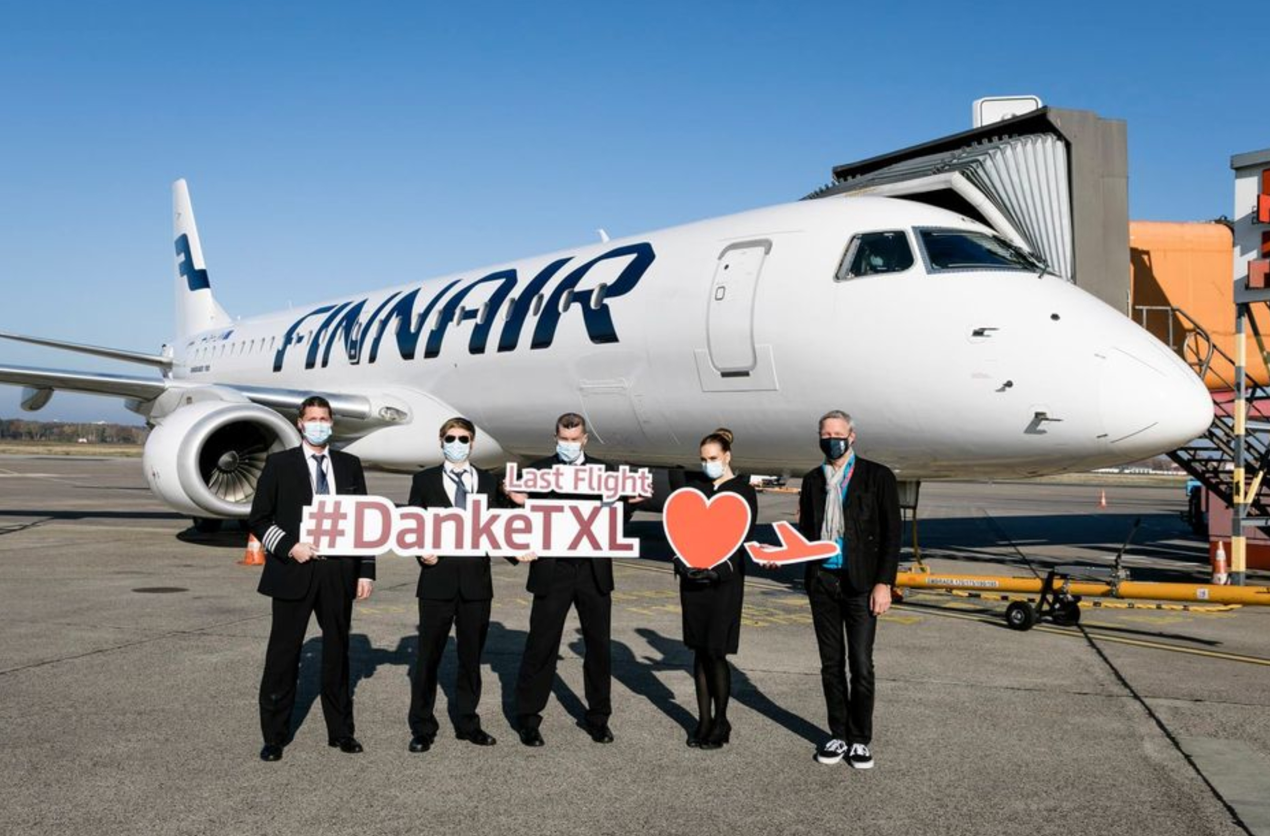 Berliinin Tegelin lentoaseman pelastusajoneuvot antoivat Finnairin viimeiselle lennolle perinteisen vesisuihkutervehdyksen 7. marraskuuta 2020. Seuraavana päivänä viimeinenkin Berliinin ilmasillan aikainen lentoasema suljettiin, kun Tegelin lentoaseman alueelta sammutettiin valot. Lentoliikenne siirtyi 8. marraskuuta alkaen kokonaan uudelle Berliinin Brandenburgin lentoasemalle.