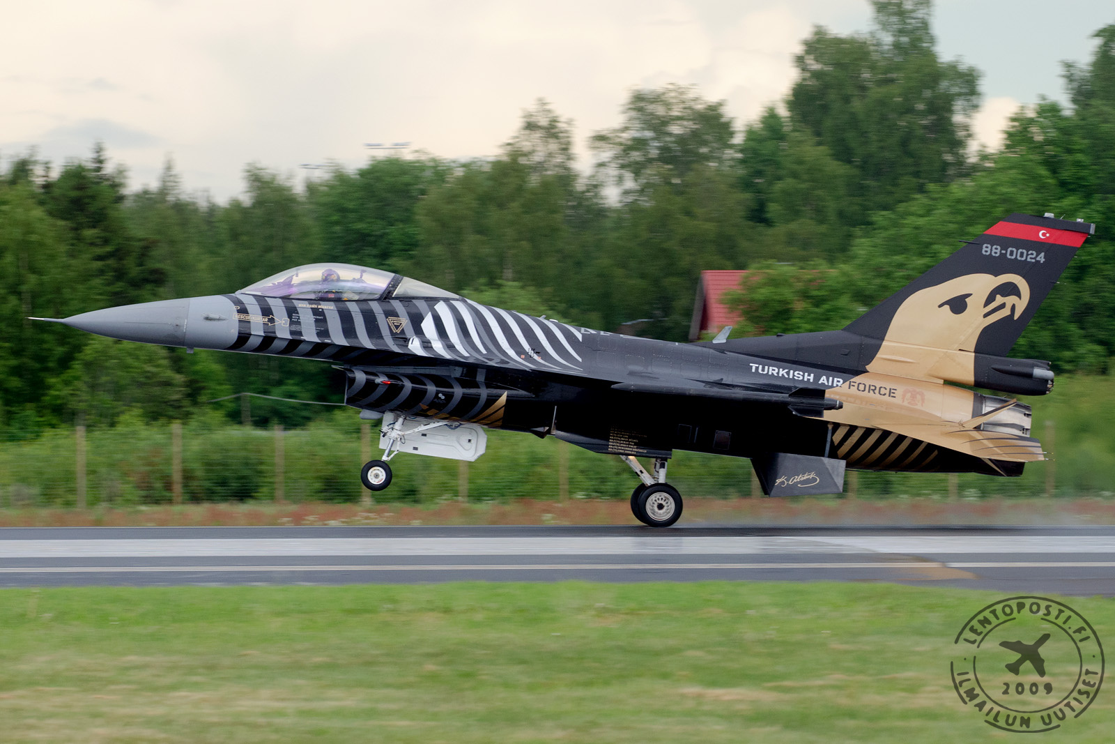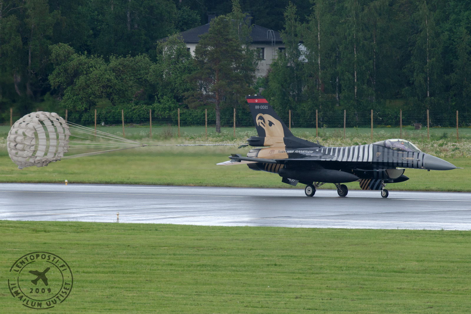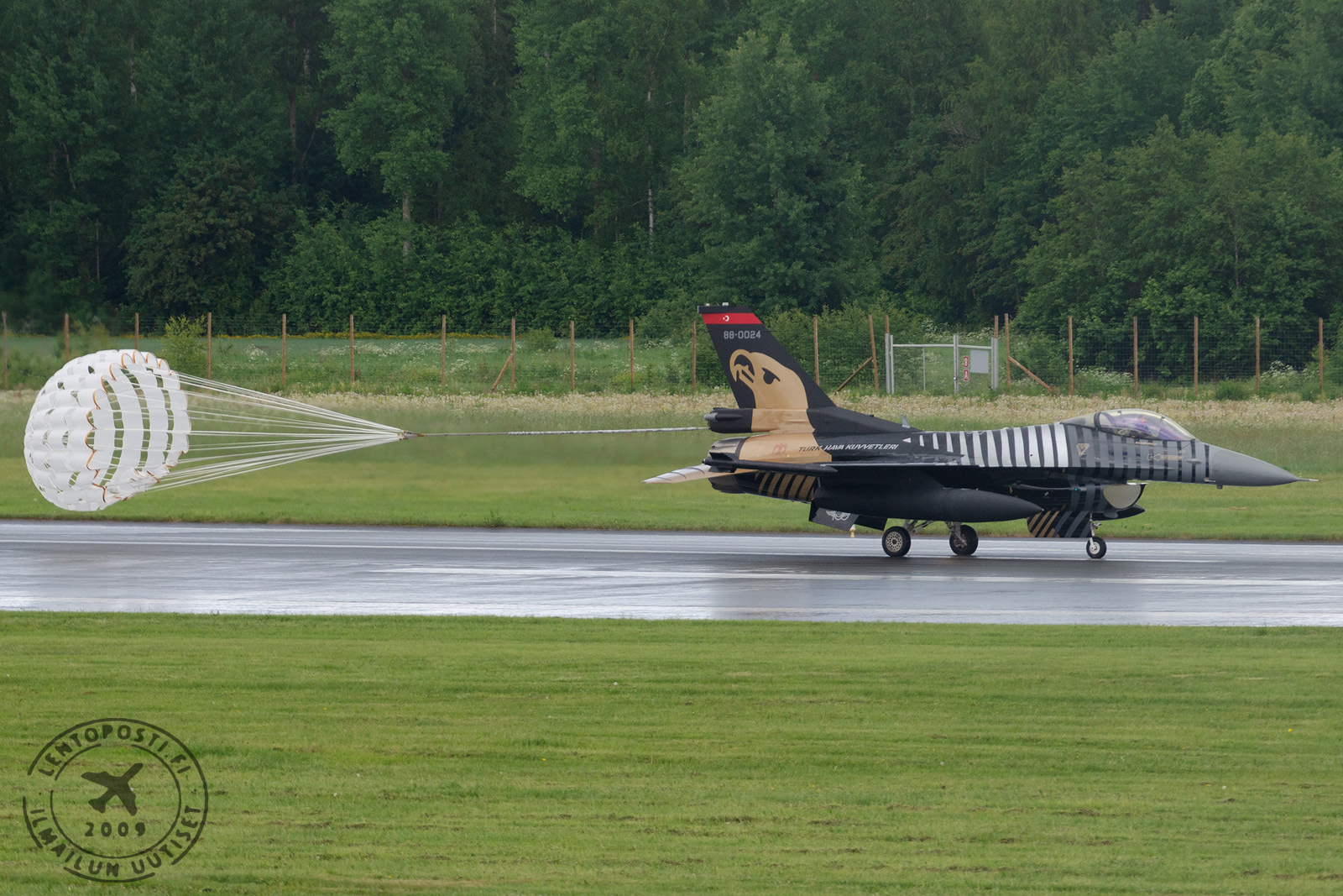 SoloTürk-demotiimin F-16 -hävittäjät laskeutuivat Vaasaan sadekuuron jälkeen keskiviikkona kello 14.15 jarruvarjoa käyttäen. Siirtolentoa ilmatankkauksin tukenut KC-135 toi Vaasaan SoloTürkin maahenkilökunnan ja varusteet. Ilmatankkerille ei kuitenkaan ollut tilaa Vaasassa ja se lensi varusteiden purkamisen jälkeen Helsinki-Vantaala, jossa se seisoo asematasolla 8.
