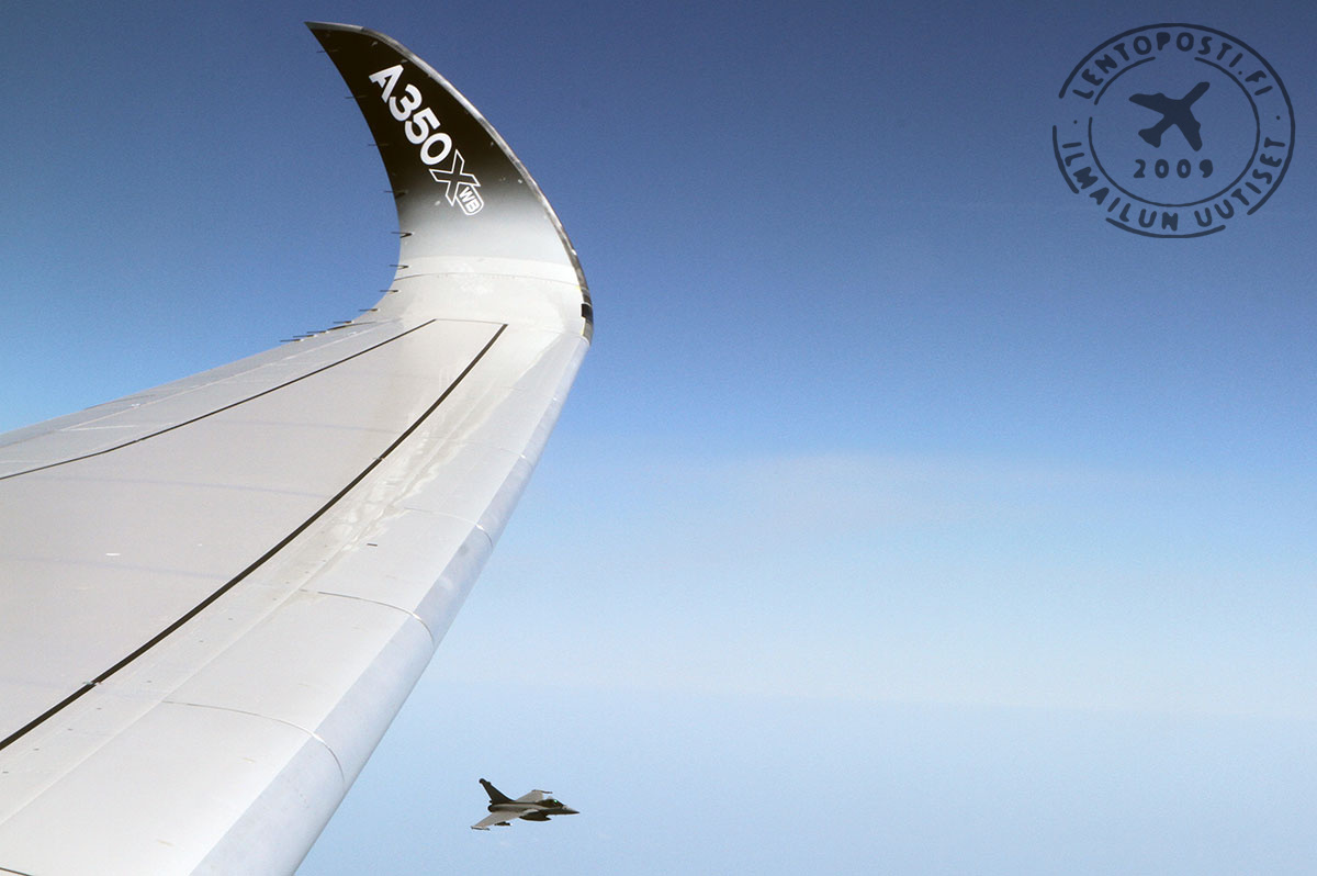 Konetta kävi tervehtimässä myös Ranskan ilmavoimien Dassault Rafale. Koska kyseessä oli matkustajalento, hävittäjä ei voinut asettua muodostelmaan aivan siivelle vaan jäi 500 metrin turvaetäisyyden päähän.