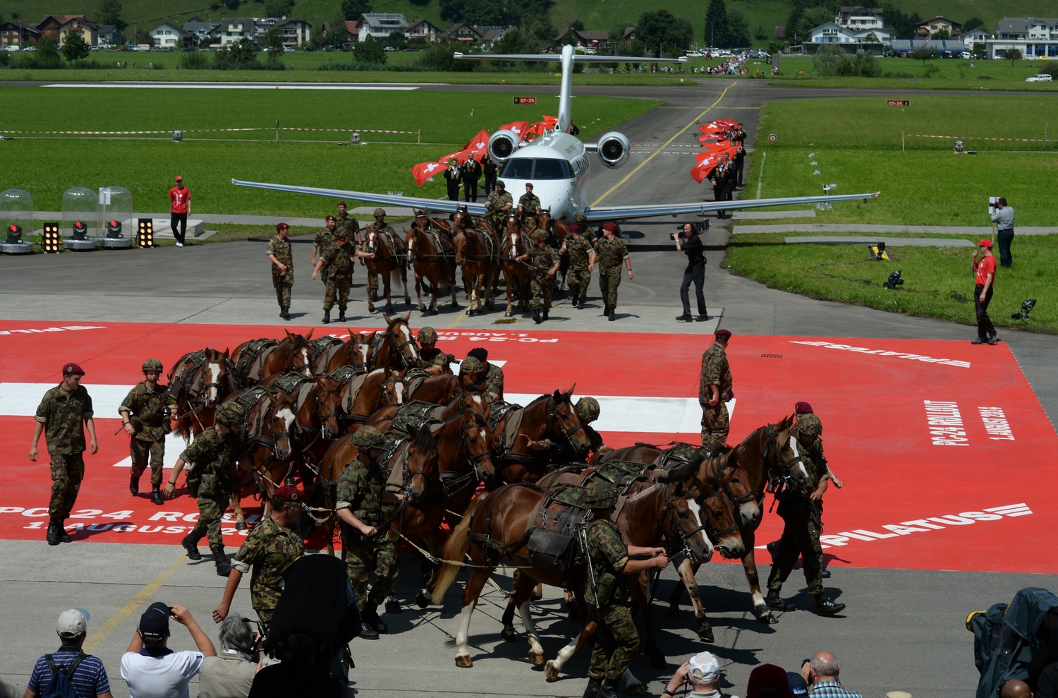 Hevosten määrä symboloi koneen tyyppitunnusta. Työhevonen puolestaan kuvastaa PC-24-luonnetta, sillä tyypillisistä liikesuihkukoneista poiketen siinä on suuri rahtiovi ja se kykenee operoimaan lyhyiltä päällystämättömiltä kiitoteiltä.