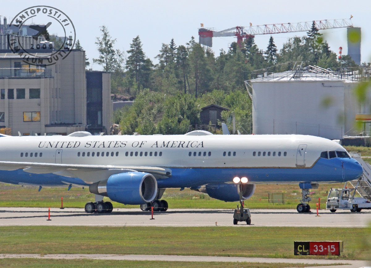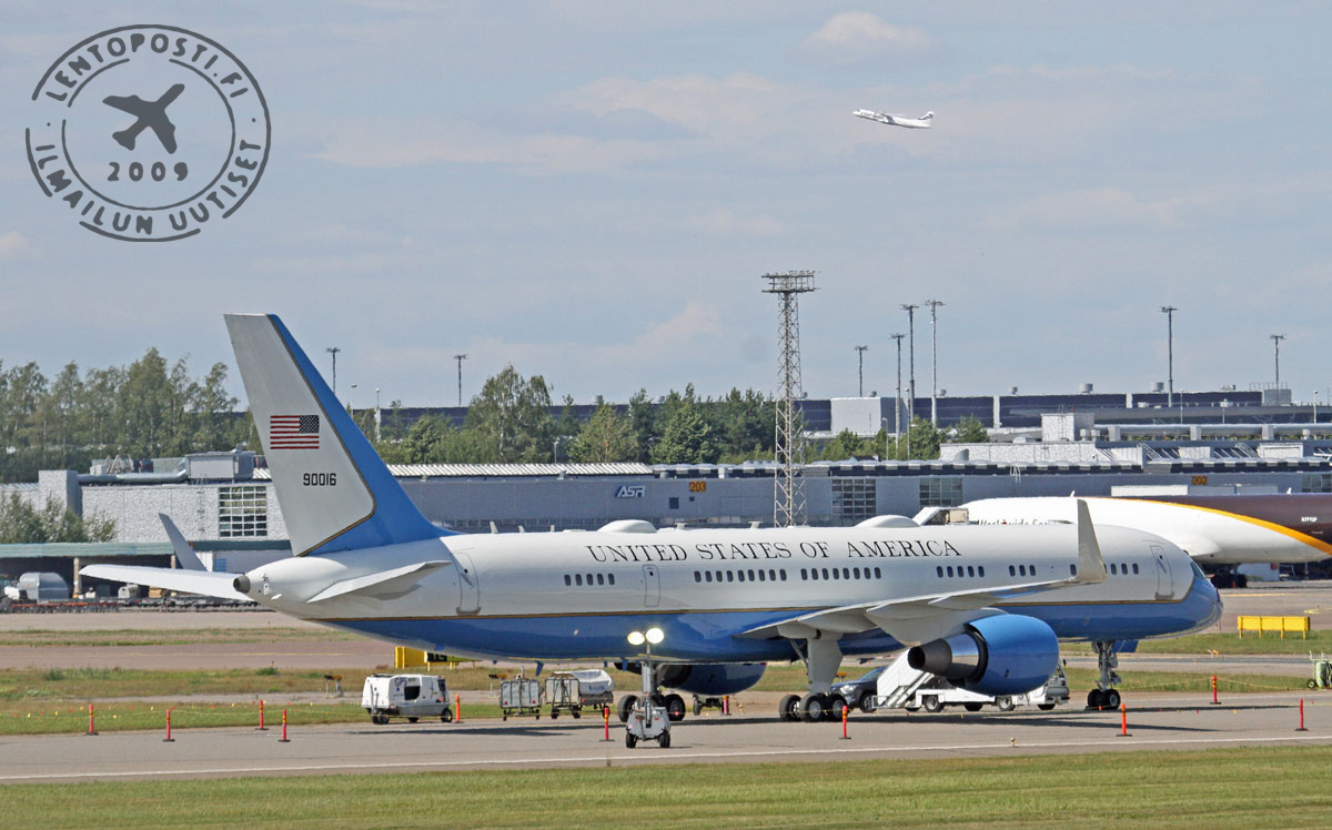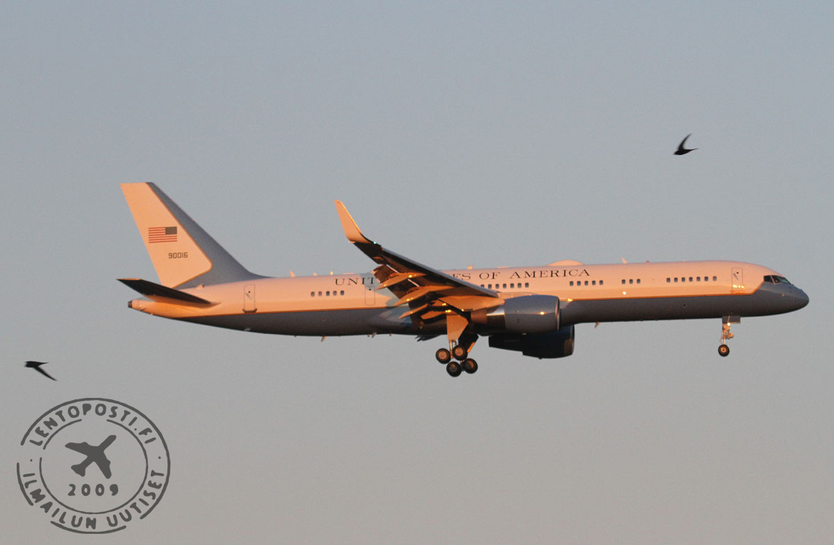 Päävieraan jälkeen Helsinki-Vantaalle laskeutui Air Force Two -varakoneenakin toimiva Yhdysvaltain ilmavoimien C-32 -erikoiskone (09-0016) tunnuksella SAM42 (Special Air Mission). Konetyyppi pohjautuu suosittuihin Boeing 757 -koneisiin. Suomeen liittyvänä erikoisuutena on se, että yksi Finnairin entisistä 757-koneista on nykyisin USAF:n käytössä juuri C-32-koneena.