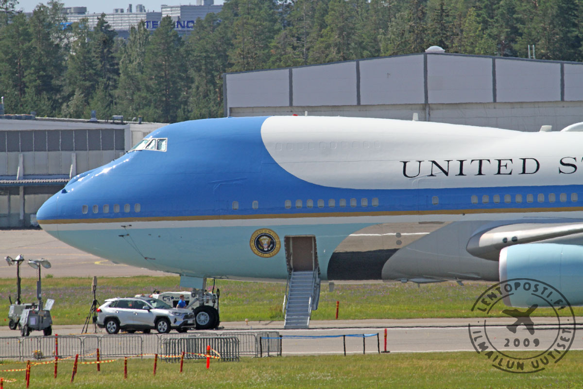 (Päivittynyt 13.7. klo 14.05) Yhdysvaltain presidentti Joe Bidenin Suomen vierailu alkoi näyttävästi keskiviikkoiltana 12. heinäkuuta. Boeing VC-25 eli Air Force One laskeutui Helsinki-Vantaalle ilta-auringossa kylpien noin iltakymmenen aikaan. Suuri yleisö innostui tämän kenties maailman kuuluisimman lentokoneen vierailusta, jonka seurauksen valtava määrä ihmisiä oli saapunut lentoaseman ympäristöön. Presidentti Biden suuntasi lentoasemalta kohti Helsingin keskustaa, joka osaltaan ruuhkautti liikennettä Helsingin suuntaan.