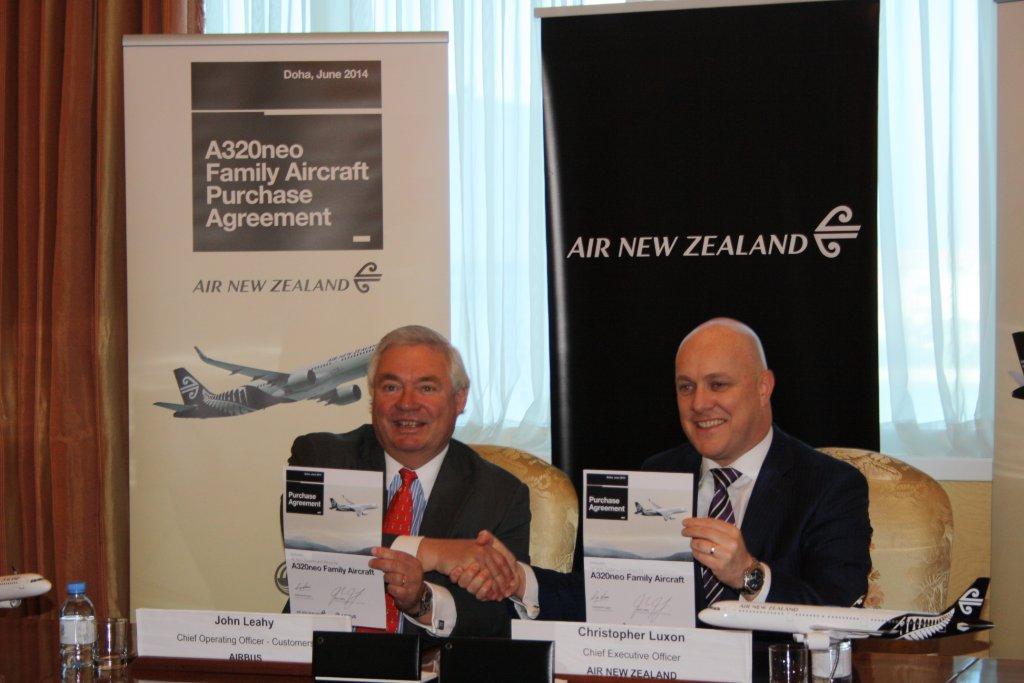 Air New Zealandin vuonna 2009 tekemä A320-konetilaus saa jatkoa, kun yhtiö tilaa ensimmäisen kerran uusia tehokkaita NEO-koneita. Uuden-Seelannin lippulaivayhtiö tilaa kolme A321neo, 10 A320neo ja yhden nykyisen mallisen A320-koneen. Koneisiin valittava moottori ilmoitetaan myöhemmin.