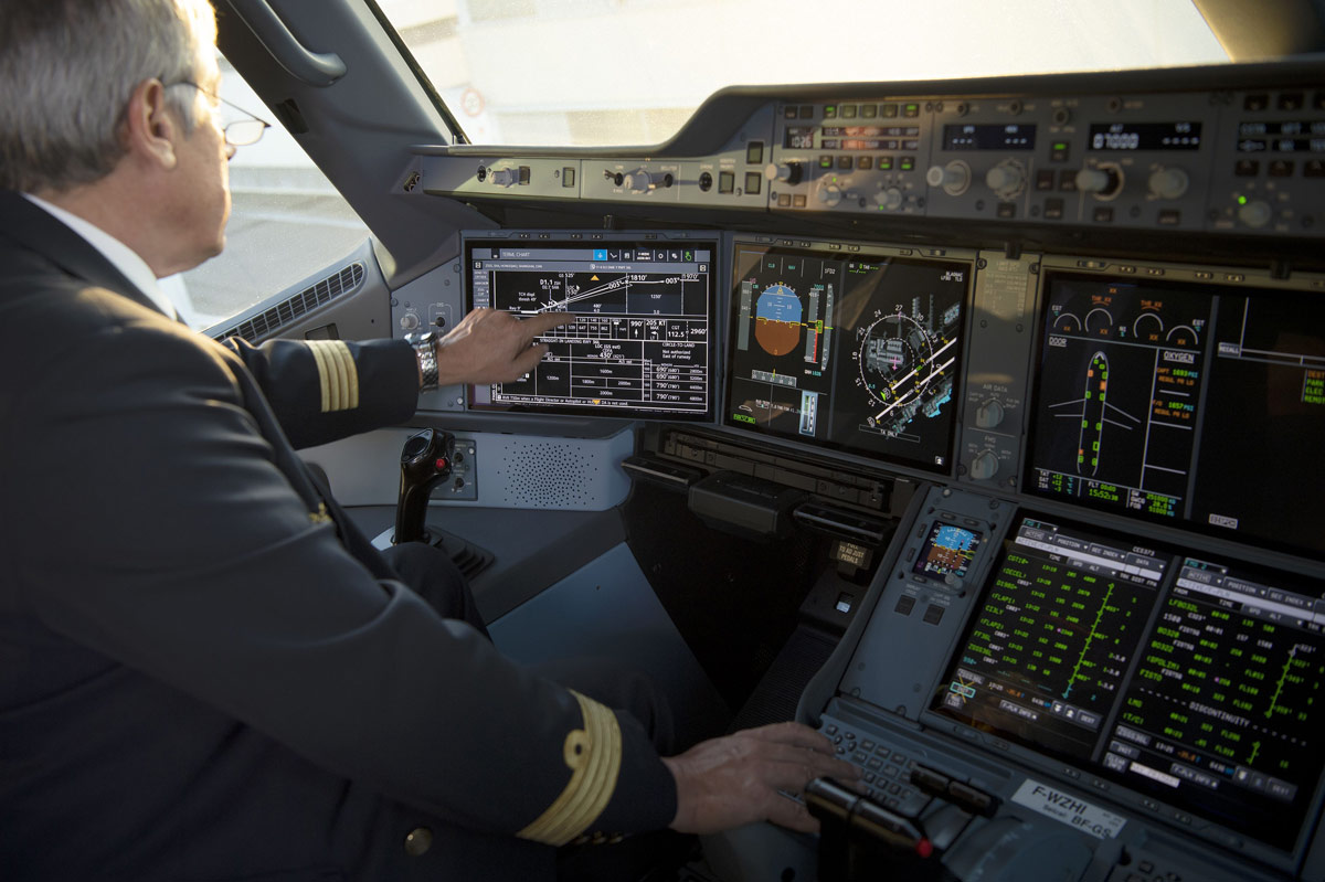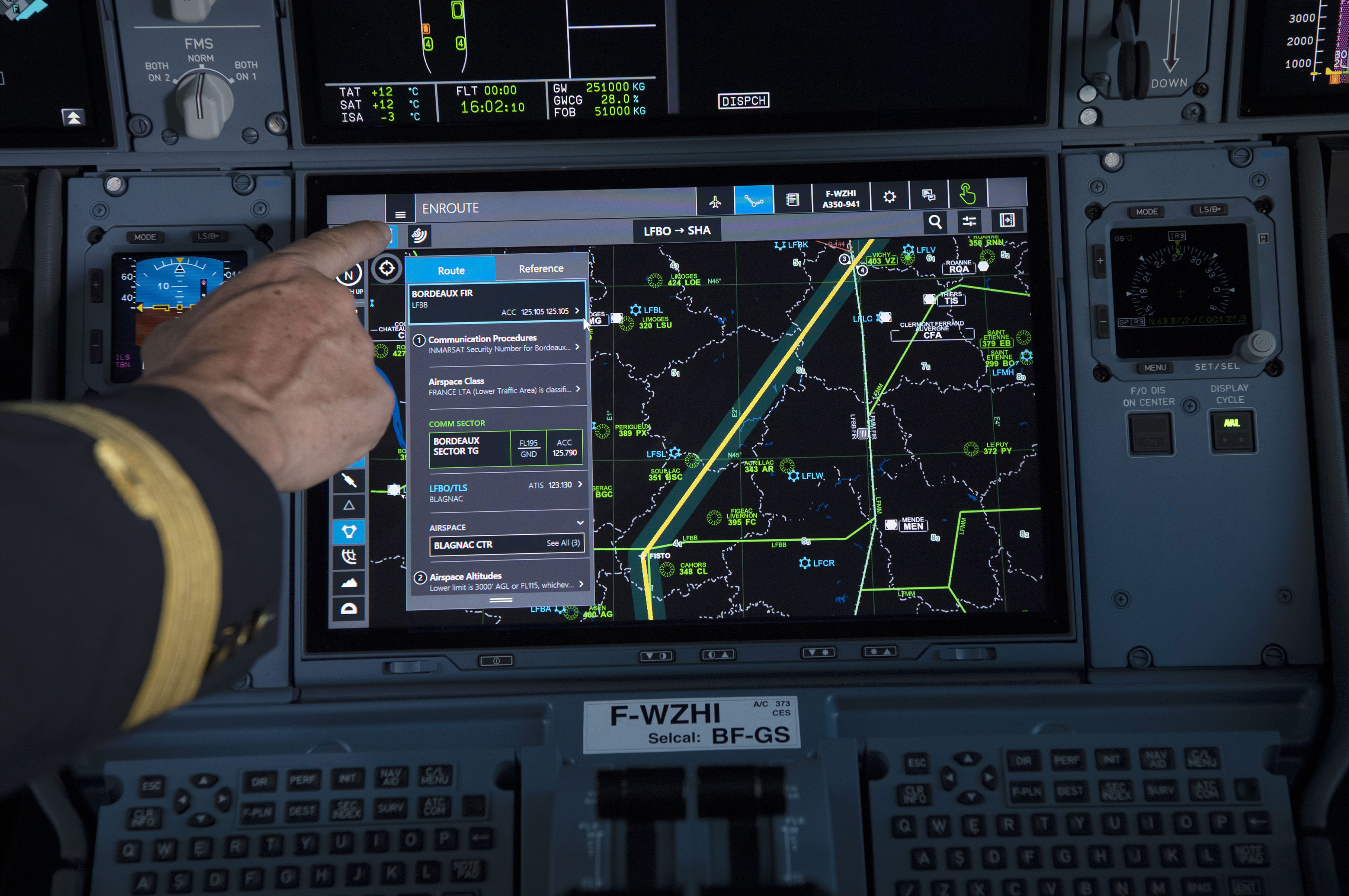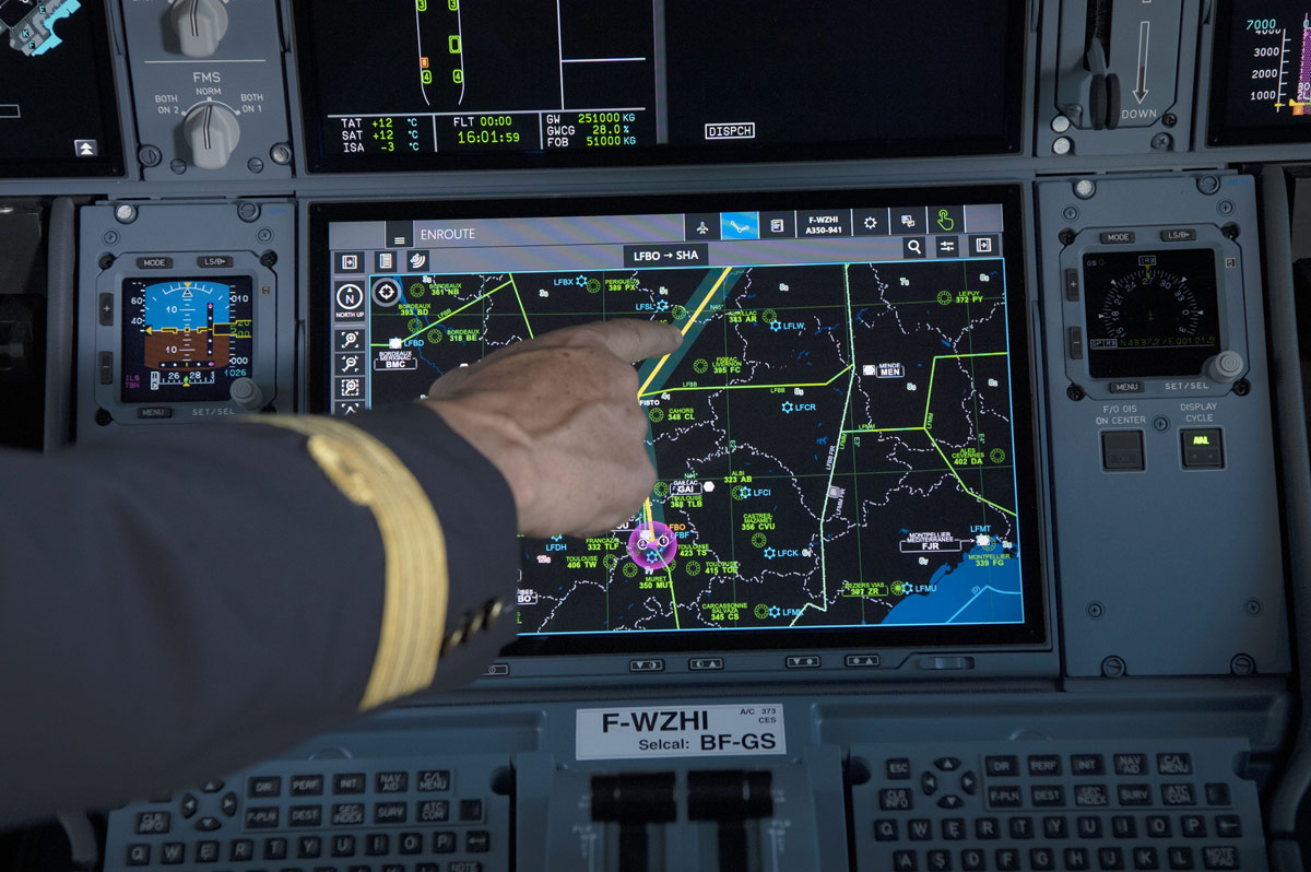 Matkapuhelimista ja tableteista tuttu kosketusnäyttöteknologia on nyt siis otettu käyttöön myös suurten matkustajakoneiden ohjaamoratkaisuissa. Airbus toimitti joulukuussa 2019 China Eastern Airlinesille A350-900 -koneen, jonka ohjaamossa on ensimmäistä kertaa hyödynnetty kosketusnäyttöteknologiaa lentokoneen kiinteissä ohjaamonäytöissä. Tulevat lentäjäsukupolvet ovat jo pienestä pitäen kasvaneet älypuhelinten ja Thalesin kehittämää ratkaisua on koelennetty jo pidempään Airbusin A350-koelentokoneella. Euroopan lentoturvallisuusviranomainen EASA antoi kyseisille kosketusnäytöille hyväksynnän marraskuussa 2019. Kaikkiaan kuudesta A350 -koneen ohjaamonäytöstä kolmea voi tämän optiona tarjottavan ratkaisun myötä ohjata kosketuksella. Kosketustoiminnot tuleva A350-koneiden ohjaamoissa uloimpiin eli ns. OIS (On-Board Information System) -näyttöihin, joiden kautta käytetään yhtiöiden omia EFB (Elecronic Flight Bag) -ratkaisuja. Lisäksi kosketusominaisuudet tulevat alempaan keskinäyttöön Center Lower Display Unit). Ohjaamonäyttöihin tulee käytettäväksi ns. kahden sormen nipistyszoomaus sekä kuvan vieritys -toiminto.