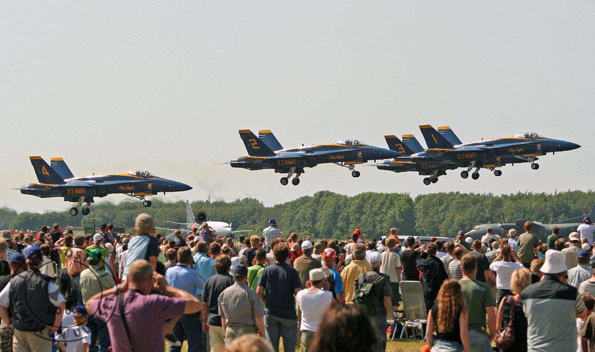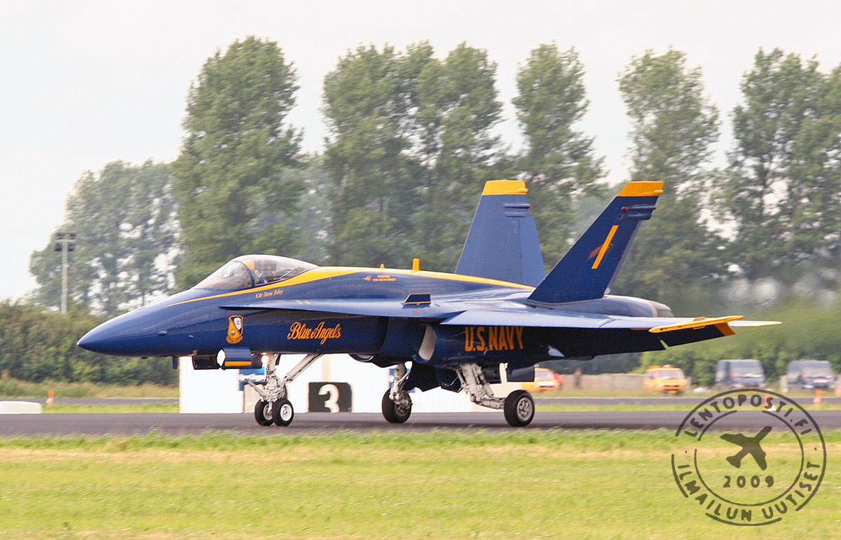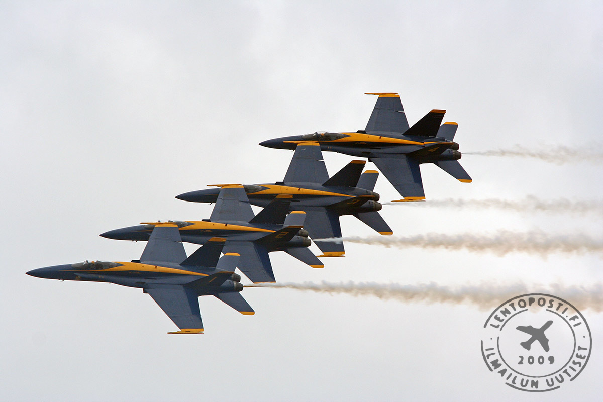 Yhdysvaltain laivaston taitolentoryhmä Blue Angels on siirtymässä Boeing F/A-18 Super Hornet -hävittäjien käyttäjäksi. Boeing ja Yhdysvaltain puolustusministeriö ovat solmineet sopimuksen yhdentoista Super Hornetin konvertoinnista taitolentoryhmän tarpeisiin.