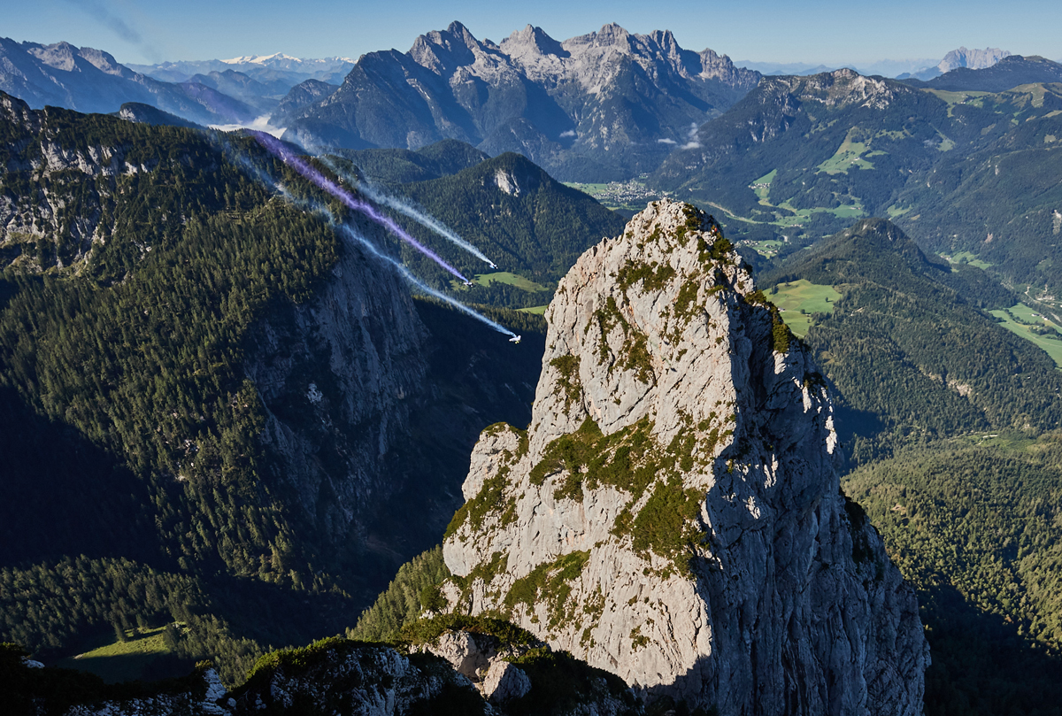 Hänen tukenaan oli kaksi perinteisellä lentopuvulla varustettua hyppääjää. Sähkömoottorit antoivat Salzmanille merkittävän suorituskykyeron muihin nähden. Laskeutuminen tapahtui laskuvarjoin ennalta suunniteltuun paikkaan. MH