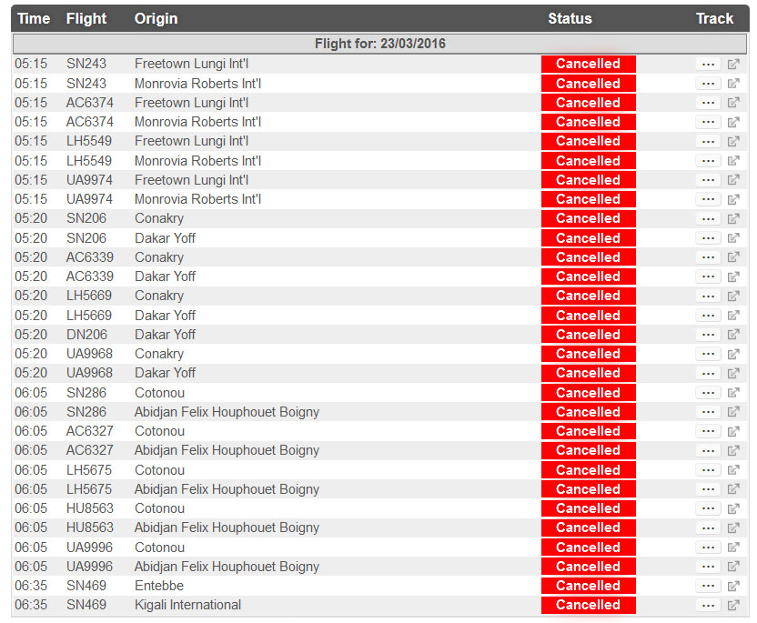 Brysselin lentoaseman lähtöhallissa tapahtuneet kaksi räjähdystä aiheuttivat tiistaiaamuna lentoaseman evakuoinnin , lentojen perumiset sekä lentoaseman sulkemisen. Lentokentän rähjähdyksissä menehtyi kymmenen ja arviolta sata loukkaantui. Lentoasemalla räjähtäneen kahden pommin lisäksi viranomaiset löysivät kolmannen räjähteen. Se tuhottiin hallitusti. Viranomaisten mukaan pommissa oli mm. nauloja ja joitain kemiallisia ainesosia. Lentoaseman lisäksi pommi räjäytettiin myös metroasemalla, jossa tuli lisää kuolonuhreja ja loukkaantuneita. Viranomaiseten lausuntojen mukaan kyseessä oli itsemurhapommitus. Iskujen tekijäksi ilmoittautui jo tiistai-iltana ISIS.