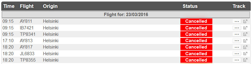 Suomen Ulkoministeriö päivitti tiistaina matkustustiedotteensa Belgian osalta, kun maassa oli pommii-iskujen seurauksena nostettu terrorismin uhkataso korkeimmaksi mahdolliseksi koko maassa. Ulkoministeriö kehottaa noudattamaan erityistä varoivaisuutta ja suosittelee erityisesti omatoimimatkaajille matkustusilmoituksen tekemistä. UM: muistuttaa myös vakuutusturvan tarkistamisesta vakuutusehtojen ja voimassaolon osalta.