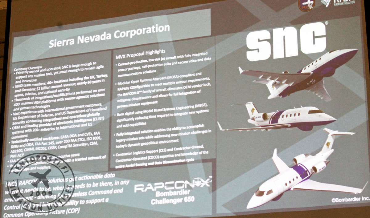 Huhtikuussa 2024 SNC sai Yhdysvaltain puolustusministeriöltä 13 miljardin Yhdysvaltain dollarin arvoisen sopimuksen uuden SAOC-johtokeskuskoneen (Survivable Airborne Operations Center). Se siis korvaa nykyiset E-4B Nightwachit eli ns. tuomiopäivän koneet. Marraskuussa 2023 SNC sai myös 554 miljoonan dollarin arvoisen sopimuksen Yhdysvaltain A-ISR -koneiden (Airborne Intelligence, Surveillance & Reconnaissance) päivityshankkeesta. SNC:n valvontakonekonsepti tunnetaan nimellä Rapcon-X. Tässä konseptissa on mukana useita eurooppalaisia sensorivalmistajia. Aiemmin Rapcon-X -koneita on toteutettu Bombardier Global 6500 -liikesuihkukoneen alustalle. SNC:n MVX-hankkeen tarjouksessa Challenger 650 -koneeseen integroidaan juuri Rapcon-X -kykyjä ja valmistajan A-ISR-alusta. Konseptiin kuuluu CarteNavin AIMS-tehtäväjärjestelmä ja kehittyneitä tietoliikenneratkaisuja sekä ISR (Intelligence, Surveillance and Reconnaissance), SAR (Search And Rescue) ja ympäristönsuojelukykyjä. Rapcon-X:ssä on mukana myös omasuojajärjestelmiä.