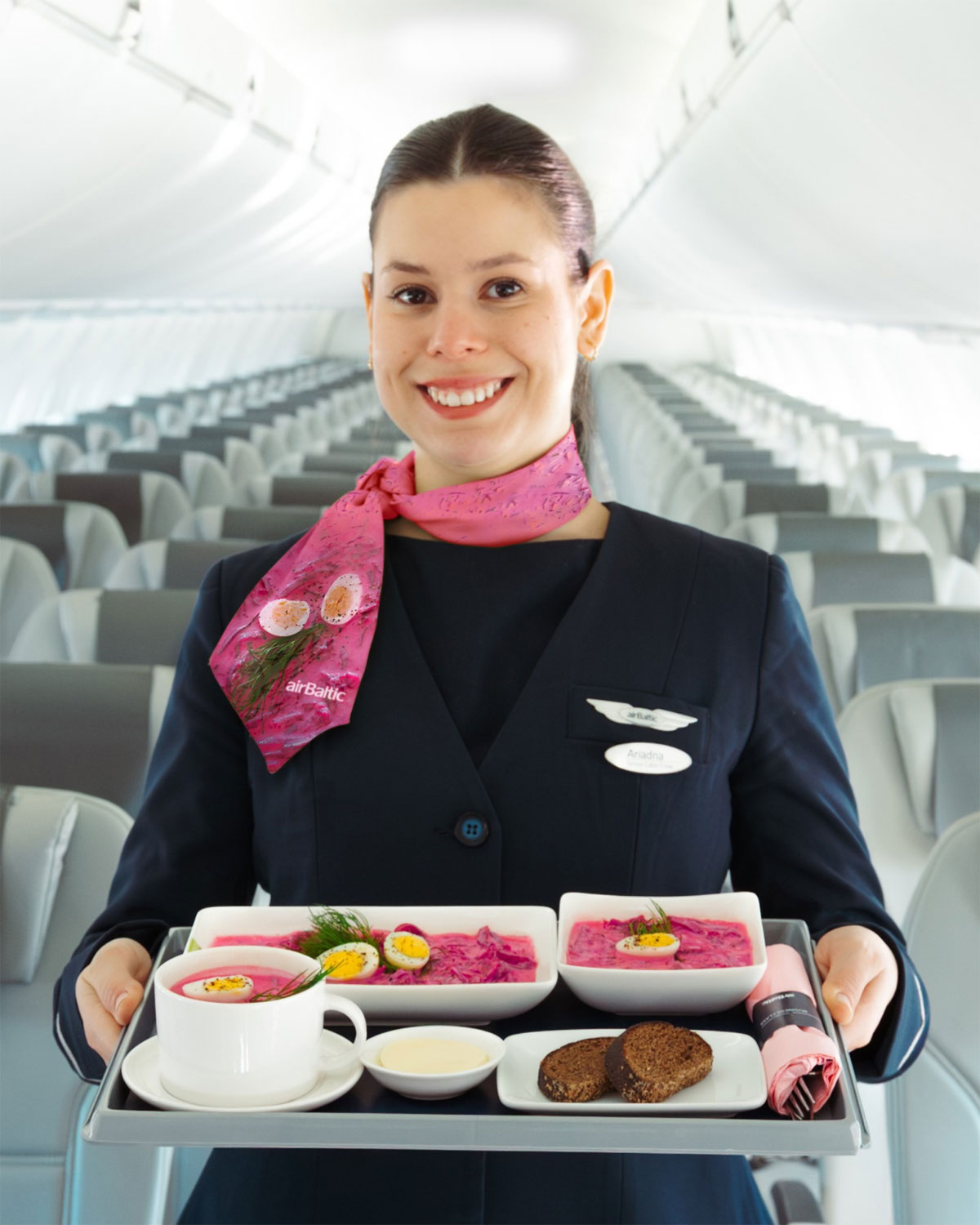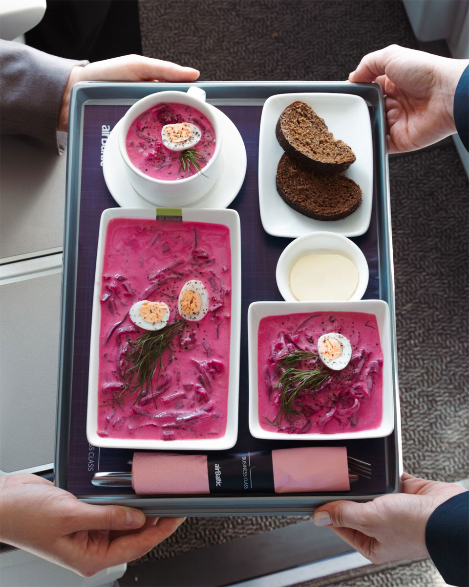 Lähde: Norse Facebook airBaltic vaihtoi keittoihin airBaltic vaihtaa kesäkaudelle tarjoilukonseptiaan ja esittelee uudet keittoateriat, joiden perusta on latvialainen punajuurikeitto. Kyseistä keittoa on tarjolla aamiaiseksi sekä lounaaksi ja illalliseksi. Myös kahvi on korvattu punajuurituotteella. Tämän latvialaisen Aukstā zupan hengessä on päivitetty myös matkustamohenkilökunnan virkapukuja.