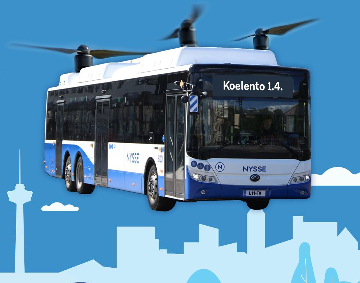 Lentobusseja on määrä testata Tampereen kattojen yllä 1. huhtikuuta kello 10-14. Tampereen seudun joukkoliikenne pyytää koelennoilta kuvamateriaalia someen tägillä #NysseLentää. Lähde: Tampereen seudun liikenne Facebook