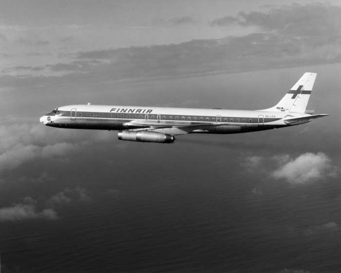 Aero O/Y arvioi 60-luvulla Boeing 707 ja Douglas DC-8 -koneita. Molemmat havaittiin hyviksi vaihtoehdoiksi vaikka niiden ominaisuudet erosivat paljon toisistaan. Tilauspäätös DC-8 -koneista julkistettiin marraskuussa 1966. Ensimmäisen koneen OH-LFR:n Long Beachiltä Seutulaan lensivät kapteenit Erkki Ehanti, Kyösti Karhila ja Jarn Arnkil. Koneen kyydissä Suomeen saapui myös koulutuksessa ollut kapteeni Mauri Maunula. Uudelle kotikentälleen nykyiselle Helsinki-Vantaalle ensimmäinen DC-8 saapui 8. helmikuuta 1969. Myöhemmin tämän koneen rekisteri vaihdettiin sekaannusten välttämiseksi yhtiön Convairin OH-LRF:n kanssa. Toukokuusta lähtien kone tunnettiin jatkossa tunnuksella OH-LFT, Paavo Nurmi.
