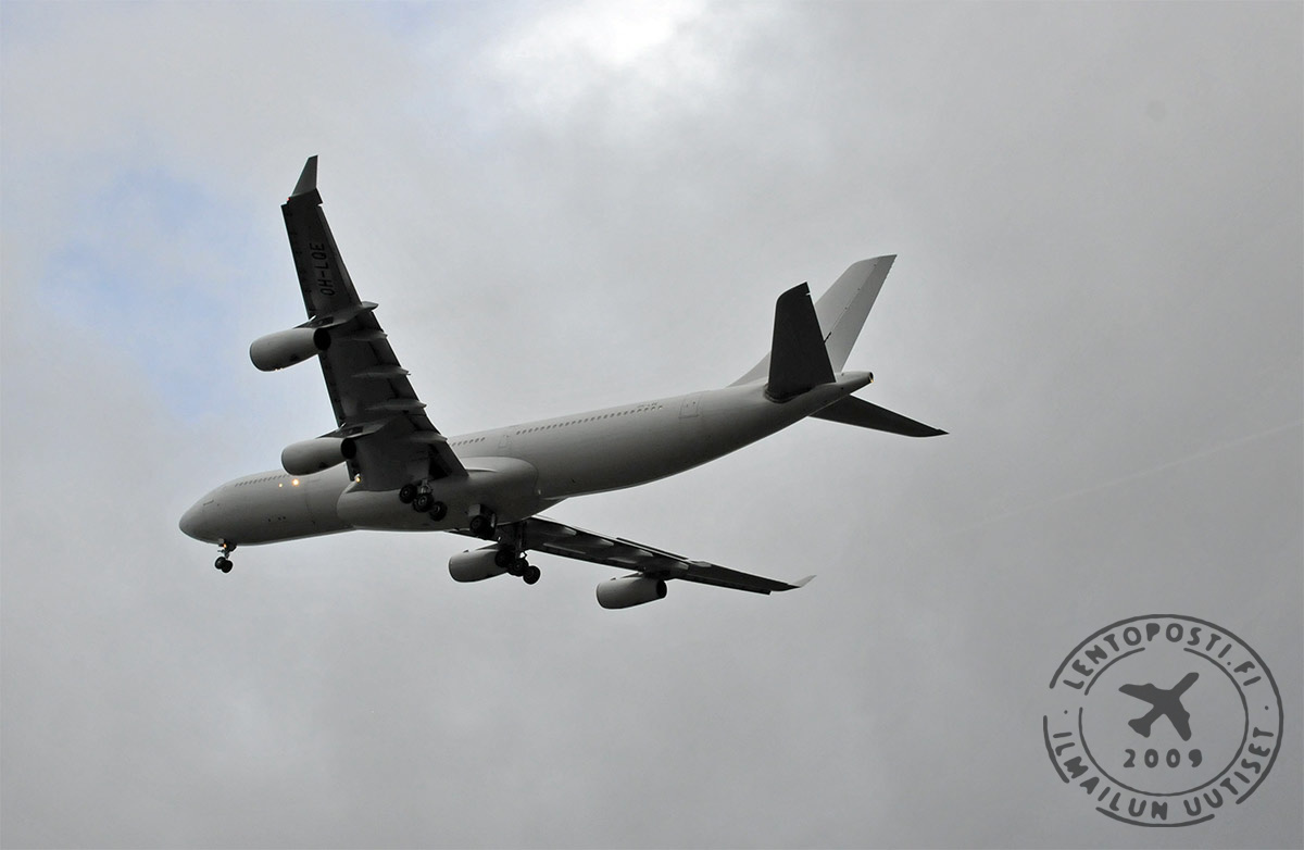 Kyseessä oli tuolloin Finnairin viides A340-300 -kone ja se oli maalattu oneworld-allianssiväritykseen. Finnairin tuorein nelimoottoriaikakausi käynnistyi vuonna 2006, kun ensimmäinen käytettynä hankittu A340-300 (OH-LQA) otettiin käyttöön. McDonnell Douglas MD11 -koneiden aika oli tulossa päätökseen ja niiden korvaaminen Airbus-laivastolla alkoi. Aiemmin yhtiö operoi nelimoottorisilla Douglas DC-8 -matkustajakoneilla vuodesta 1969 alkaen. Niillä Finnair lensi aina vuoteen 1985 asti. Blue1 on lentänyt Avro RJ85 -suihkukoneilla. Mäntämoottoriaikakautena Ilmavoimat operoi sotien aikana nelimoottorisella de Havilland D.H.86 Express -koneella. Veljekset Karhumäellä on ollut DC-6-koneita.