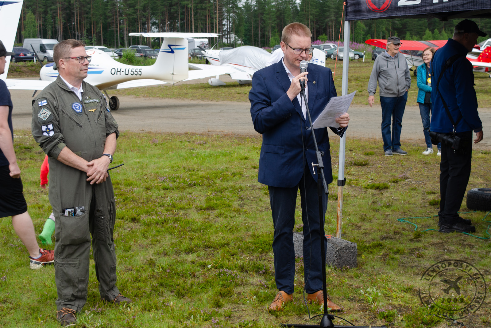 Lipunnoston jälkeen viralliset avauspuheet pitivät Kuhmon kaupunginjohtaja Juhana Juntunen, kansanedustaja Mikko Polvinen ja Suomen Ilmailuliiton puheenjohtaja Timo Hyvönen.