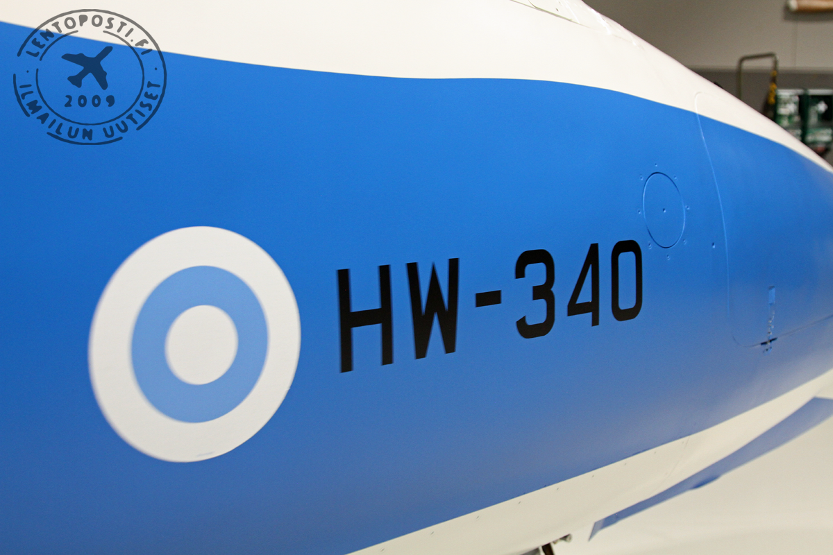 Nyt julkistettu sinivalkoinen Hawk (HW-340) on ensimmäinen Suomen ilmavoimien virallinen erikoismaalaus, jossa koko lentokone on ylimaalattu. Aiemmin Midnight Hawks -taitolentoryhmän koneissa on nähty myös erikoisteippauksia.