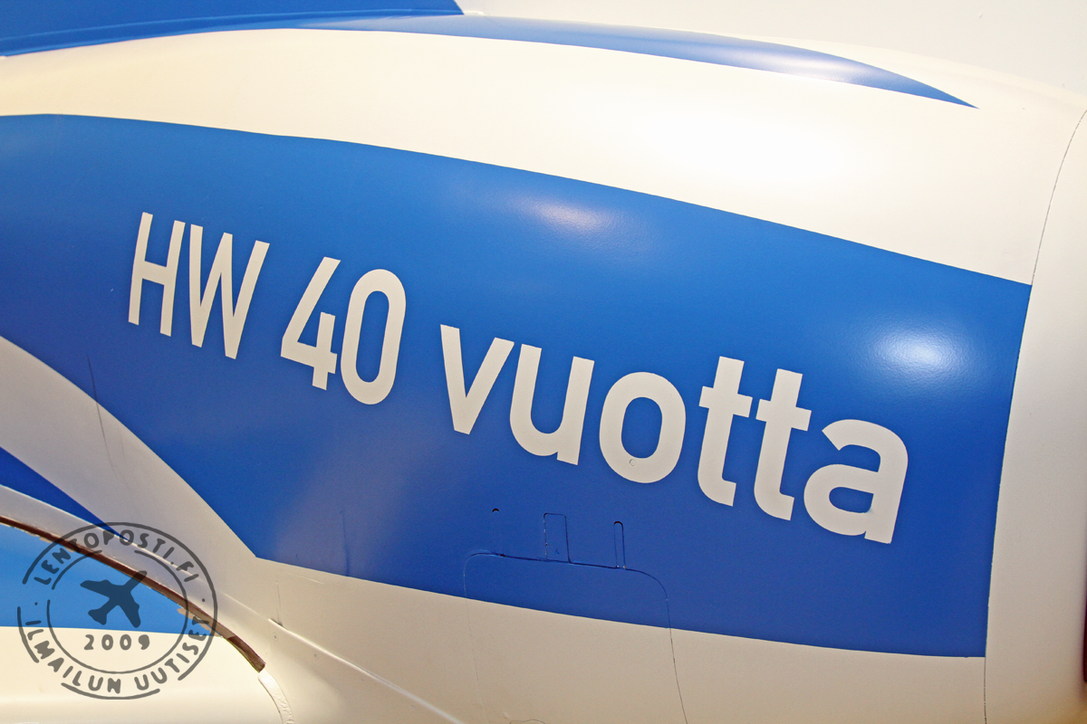 Komea sinivalkoinen Hawk HW-340 esiteltiin sen seurauksena hallitiloissa. Erikoismaalatun koneen rungon alapinnalla lukee tekstit HW 40v ja vuosiluvut 1980-2020. Ne ja koko kone tulevat näkymään seuraavalla lentonäytöskaudella suurelle yleisölle.