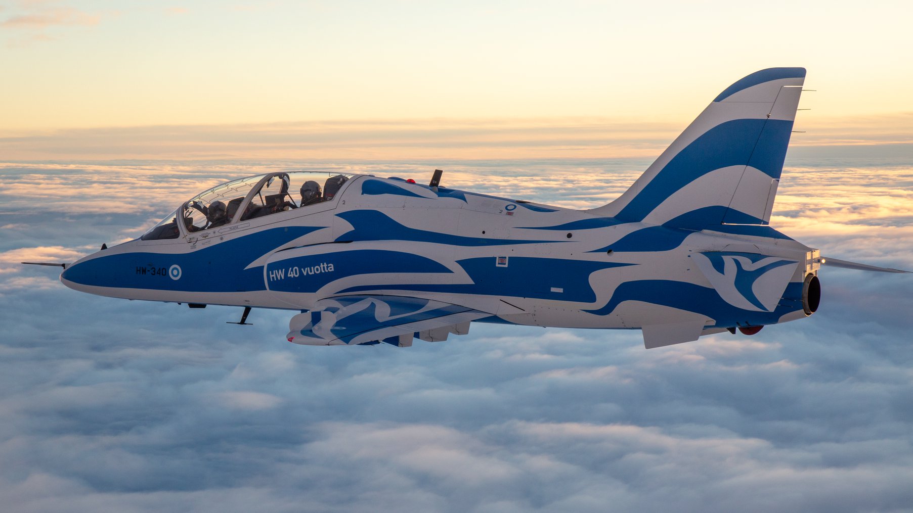Ilmavoimat onnittelee lentäjäveteraania Hawk-ylilennolla kello 13.15. Hawk lentää reittiä Lauttasaari‒Tali‒Pitäjänmäki.