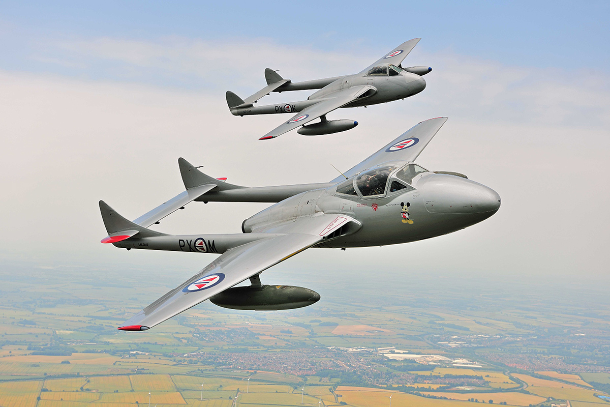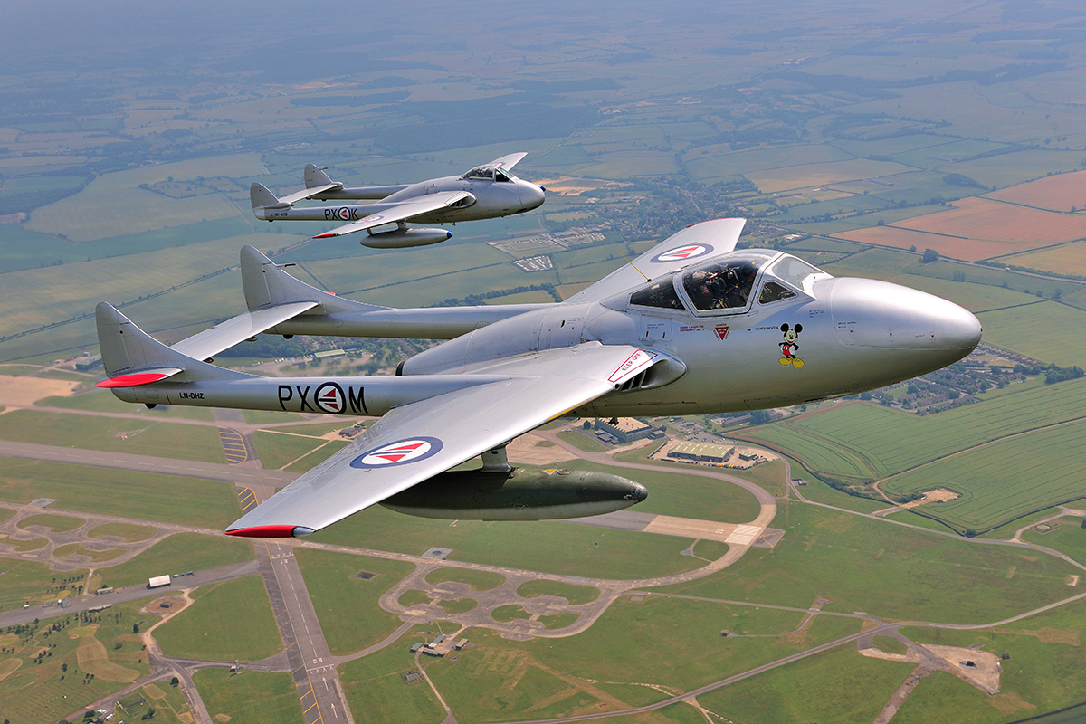 Kyseinen de Havilland Vampire T.55 on valmistettu lisenssillä Sveitsissä vuonna 1959. Sveitsin Ilmavoimat lensi koneella vuoteen 1990 saakka, jonka jälkeen se huutokaupattiin eteenpäin. Vuonna 2005 koneen osti Flyvåpnets Historiske Skvadron ja sen kotipaikka on Norjan Ryggessä.