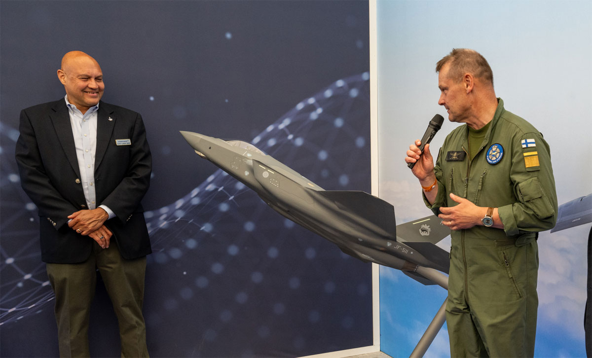 Lockheed Martinin F-35 -asiakasohjelmien johtaja Mike Shoemaker, Lockheed Martin Aeronauticsin Suomen, Tanskan ja Ruotsin maajohtaja Scott Davis ja Lockheed Martin Aeronauticsin asiakasvaatimuksista vastaava apulaisjohtaja Gary North luovuttivat Suomen Ilmavoimien komentaja kenraalimajuri Juha-Pekka Keräselle kaksi F-35A -pienoismallia.