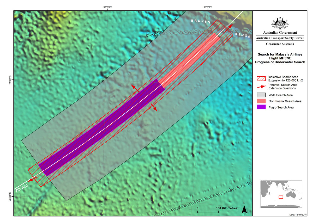 Asiantuntijoiden mukaan todennäköisyys lentokoneen löytämiseksi juuri tältä 120 000 neliökilometrin alueelta on suurin. Sen ulkopuolista aluetta on mahdoton määrittää yhtä suuren todennäköisyyden tasolle. Etsinnät on keskitetty Doppler-siirtymän avulla lasketulle ns. seitsemännelle kaarelle. Vuoden 2014 aikana merenpohjaa kuvattiin noin 150 000 neliökilometrin alueelta ja niistä muodostettiin merenpohjan bathymetrinen korkearesoluutiokartta. Varsinaiset etsinnät aloitettiin niiden perusteella.