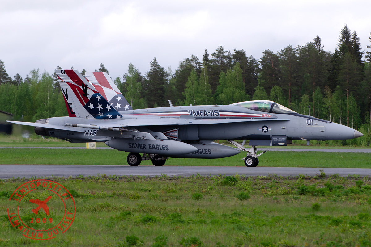 Karjalan lennosto valmistautuu virallisesti 2. kesäkuuta alkavaan Yhdysvaltain merijalkaväen laivuevierailuun. Lentoposti.fi oli osaltaan vastaanottamassa Suomeen maanantaina 24. toukokuuta saapuneita kymmentä merijalkaväen hävittäjälentolaivue 115:n (VMFA-115) F/A-18C/D Hornet -hävittäjää.