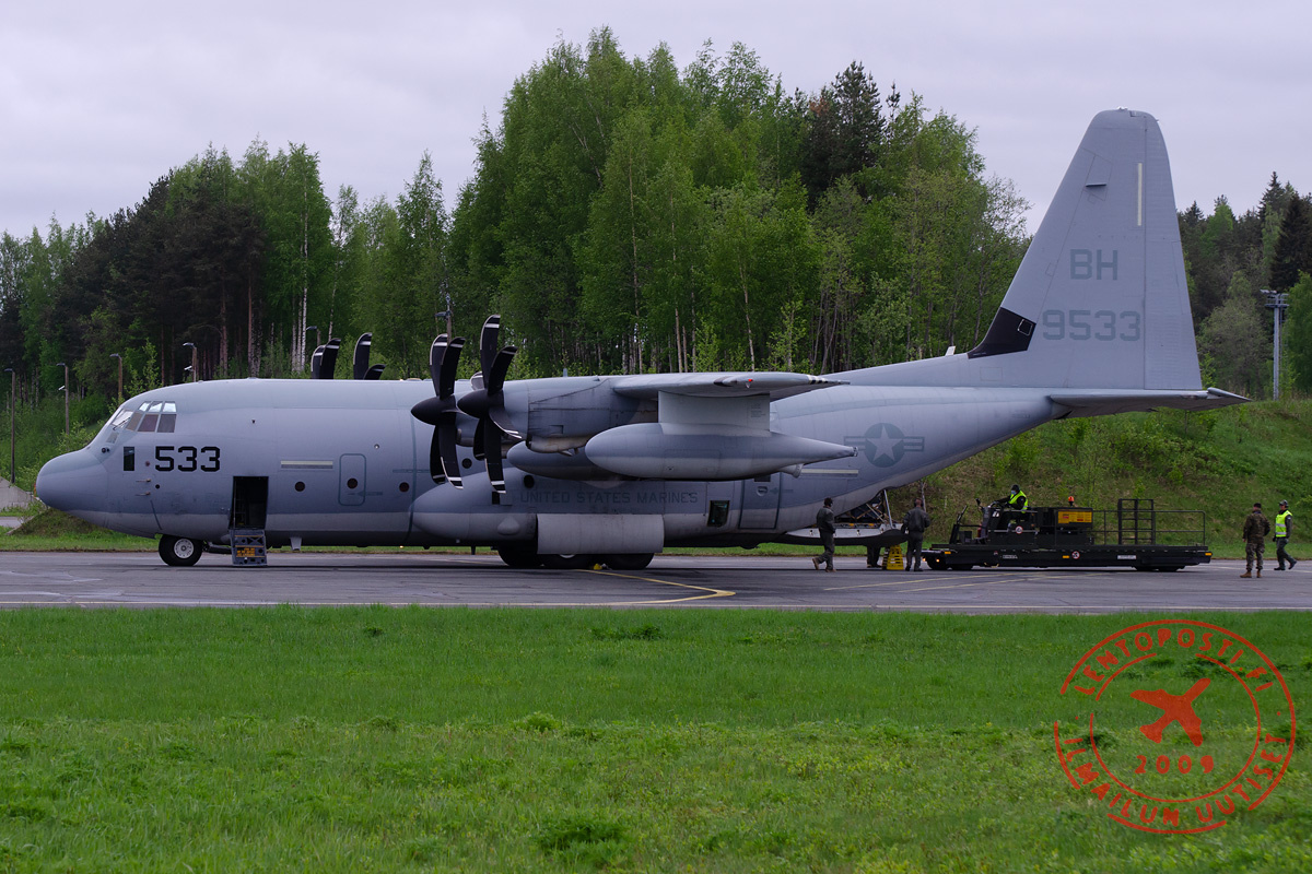 Maanantaina Suomeen saapui myös ilmatankkaus- ja kuljetuslentolaivue 452:n (Marine Aerial Refueler Transport Squadron 452, VMGR-452) Lockheed Martin KC-130J Hercules -ilmatankkauskone.