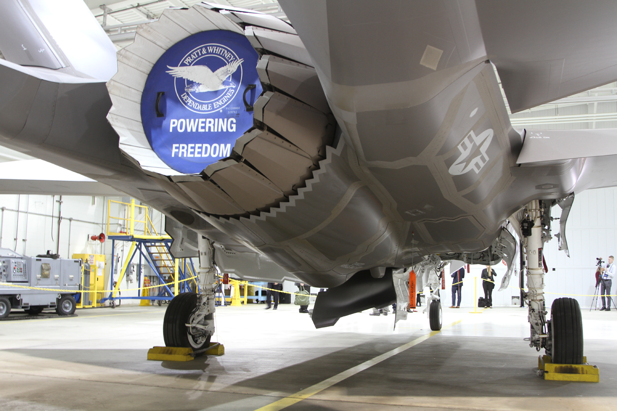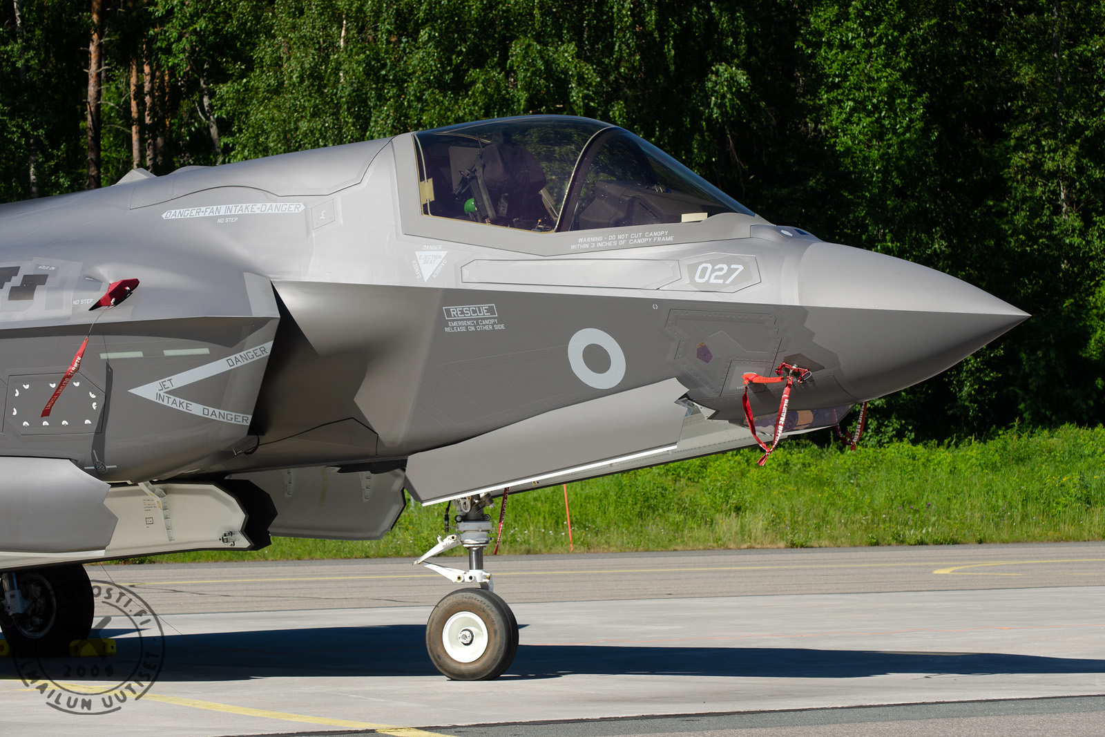 Suomen F-35A -hävittäjiin asennetaan jarruvarjot, joiden muotosuojat näkyvät kyhmynä hävittäjän takarungossa.
