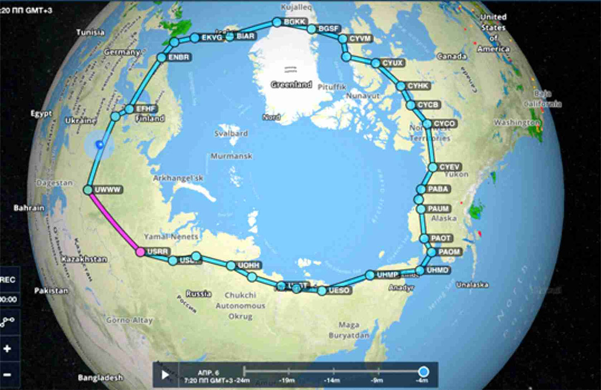 Aktinen tutkimuslento starttasi 4. heinäkuuta Venäjän Samarasta. Retkikunta on kiertänyt maapallon aktisten alueiden yllä. Reitti kulki Venäjältä Alaskan kautta Pohjois-Kanadaan ja sieltä Grönlantiin, Islantiin, Färsaarille, Norjan Bergeniin, Ruotsin Gävleen ja edelleen Suomeen ja Malmin lentoasemalle 13. elokuuta. Lyhyen tankkausvälilaskun jälkeen retkikunta jatkoi matkaansa kohti Venäjän Pihkovaa.
