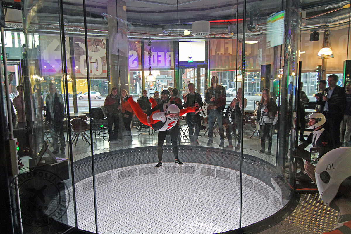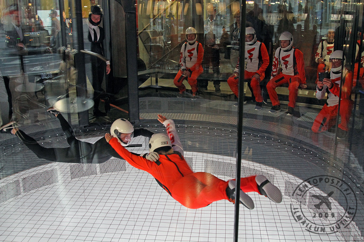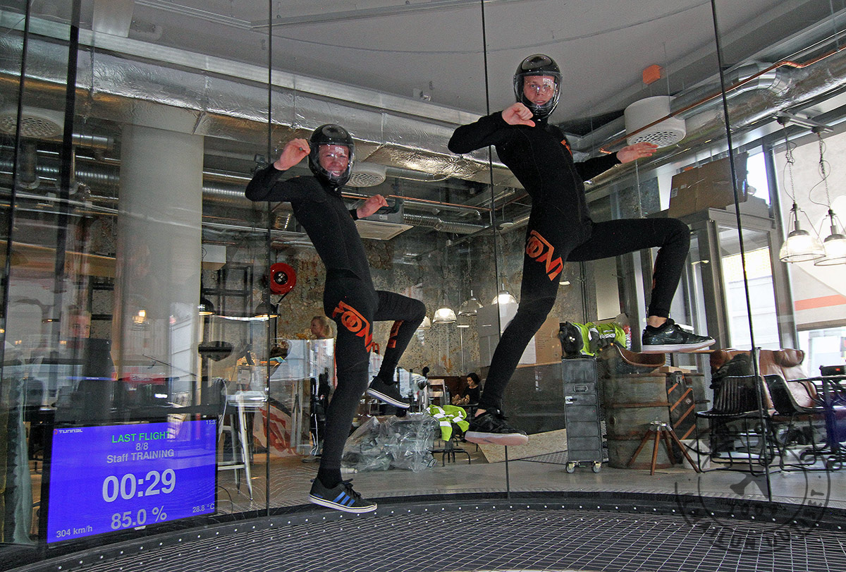Tunnelin lentoalueesta sisätiloihin näkyy noin 4,5 metriä korkea lasiseinäinen putki, jonka yläpuolella on vielä umpiseinäistä tilaa nousta jopa 20 metrin korkeuteen. Alapinnan turvaverkosta eli lattiapinnasta alaspäin tunnelia näkyy 12 metriä. Ohjeiden mukaisesti kaadun ilmavirtaan ja lennättäjä nappaa kiinni. Tuuli kannattelee ja lennän hetken ilmavirrassa. Lennättäjä nappaa välillä kiinni, opastaa käsimerkein jalat koukkuun ja leukaa ylös. Pyöritys jatkuu ja kasvoilla on varmasti näkemisen arvoinen hymy. Pieni tauko tunnelin odotustilassa ja peukalot pystyyn erikoisesta kokemuksesta. Lisää on kuitenkin luvassa.