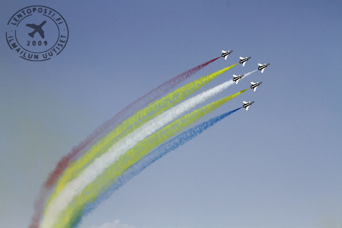 Euroopan ilmailutapahtumien tavoin pilvinen sää ja sateet eivät muodosta ongelmia Dubaissa. Sininen taivas ja paahtava aurinko takasivat hyvät olosuhteet iltapäivien lentonäytösosuuksille.