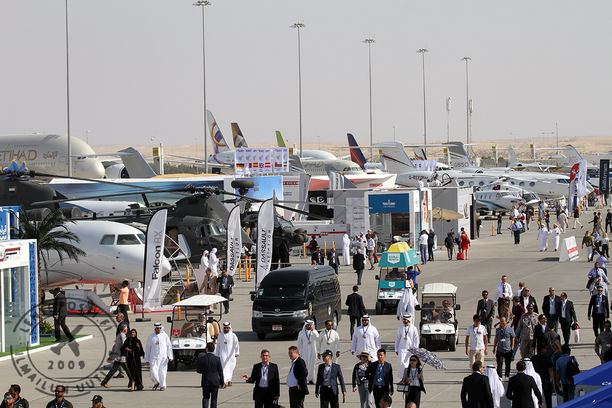 Lentonäytösosuudessa esiintyi pääosin sotilaskoneita mutta nähtiin ilmassa myös Airbus A350 XWB ja Beriev Be-200 palopommittaja. Taivaalla nähtiin kolmekin taitolentoryhmää, joista yksi oli UAE:n oma Al Fursan Aermacchi MB-339 -koneillaan. Osaamistaan esitteli myös Kiinan ilmavoimien PLAAF:n taitolentoryhmä August 1, joka lensi Chengdu J-10 -hävittäjillä.