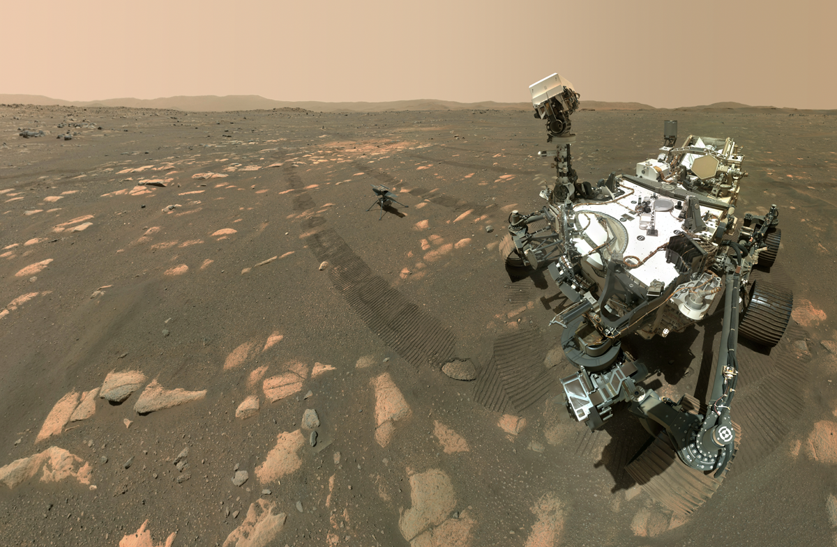 Ingenuity on auringonvalosta itsensä lataava pieni 1,8 kg:n painoinen helikopteri, jossa oli 1,2-metriset vastakkain pyörivät kaksoisroottorit. Se oli suuniteltu lentämään viisi koelentoa 30 päivän aikana. Lopulta Ingenuity lensi lähes kolmen vuoden aikana 72 lentoa ja 30 kertaa pidemmälle kuin oli suuniteltu. Lentoaikaa kertyi 128 minuuttia ja matkaa lennoilla taittui 17,7 kilometriä. Ingenuity nousi korkeimmillaan noin 24 metriä Marsin pinnan yläpuolelle.