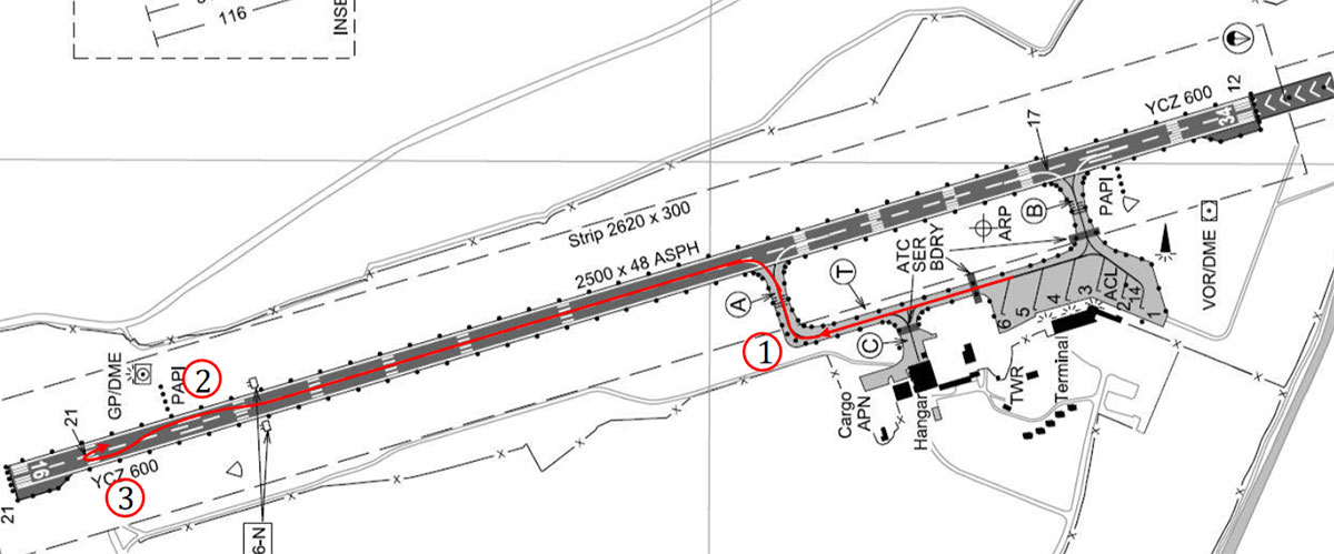 Kaikki jarrut sekä indikaatiot vaikuttivat normaaleilta. Samankaltainen nykäys ilmeni rullatessa uudelleen, joten kapteeni päätti pitää kiitotien päässä tehtävän käännöksen aikana pitää jarruja kevyesti päällä estääkseen nykäykset käännyttäessä.
