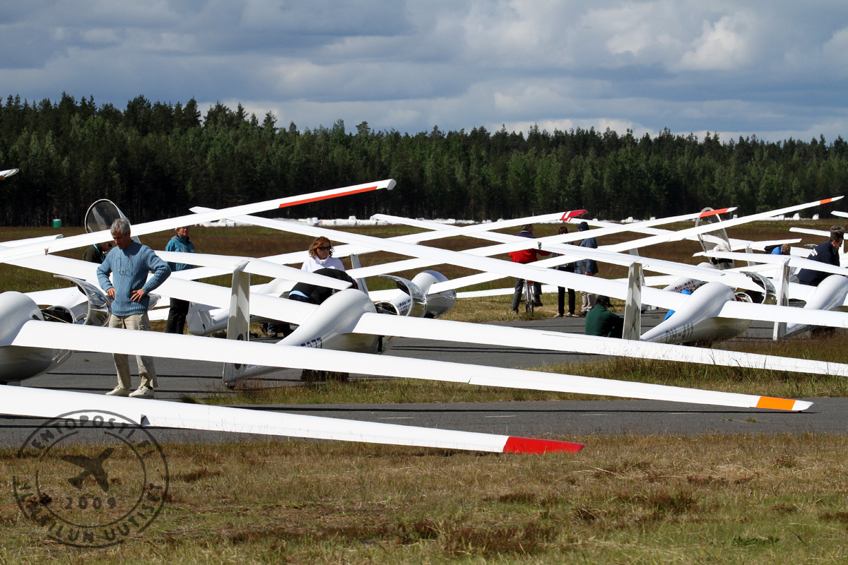"Suomen joukkueesta jokainen voi päästä kymmenen parhaan joukkoon ja yksi tai kaksi jopa mitaleillekin. Meillä on joukossa hyviä yksilöitä ja nyt hyödynnetään myös yhteistyötä", arvioi Nurminen joukkueen mahdollisuuksia. Perinteisesti purjelentokilpailuissa vahvimmat maat ovat Saksa, Ranska, Englanti ja Puola. Pääsääntöisesti purjelentäminen on harrastustoimintaa mutta Ranskassa takana on myös valtionohjelma ja suurimmat sponsorit ovat saksalaisilla. "Purjelento on keksitty Saksassa 1930-luvulla ja siellä on jo 4-5 polven lentäjiä samasta perheestä", sanoo Nurminen. Kilpailuiden virallisina harjoituspäivinä 19. ja 20. kesäkuuta lennettiin vaihtelevassa säässä reilun 100 kilometrin (19.6) ja reilun 200 kilometrin (20.6) mittaiset tehtävät. Räyskälä on omaa luokkaansa isojen kisojen järjestyspaikkana. Se on myös Pohjoismaiden suurin ja tunnetuin purjelentokeskus. Kentällä on mm. kaksi pitkää kiitotietä rullausteineen ja runsaasti hallikapasiteettia. Myös ilmatilavaraus on riittävä ison kilpailun läpiviemiseksi. Räyskälän erityispiirteitä ovat Suomen kesän pitkät päivät ja vaihtelevat säät. Lähimaasto tarjoaa hyviä termiikkejä, joten paikallistietämyksestäkin voi olla Suomen joukkueelle hyötyä. "Pientä jännitystä on näin kisan alussa. Nyt on haettava positiinen vire ettei mene väkinäiseksi yrittämiseksi", kertoo Lehto.