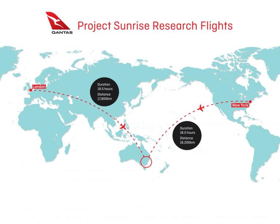 Ensivaiheessa Qantas lentää ULR-lentoja Sydneystä Lontooseen ja New Yorkiin. Niiden lisäksi esillä ovat olleet myös suorat lennot Pariisiin ja Frankfurtiin. Qantas vastaanottaa ensimmäisen uuden A350-1000 -laajarunkokoneen loppuvuodesta 2025. Project Sunrisen lennot Sydneystä New Yorkiin avataan pian tämän jälkeen.
