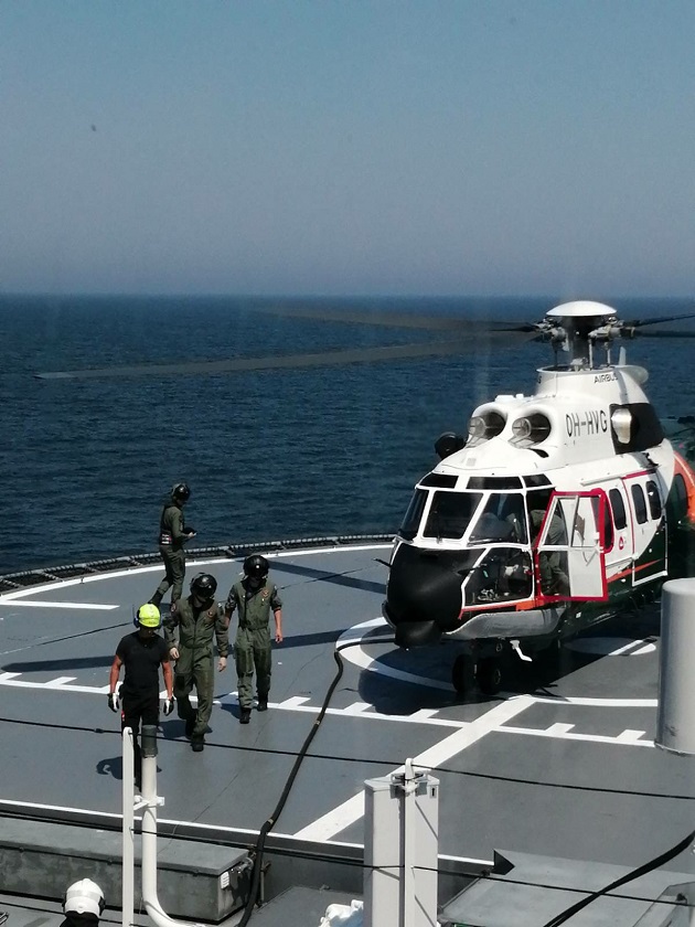 Harjoitusalueelle siirtyminen hyödynnettiin tehokkaasti koulutukseen. Vartiolentolaivueen helikopteri siirtyi Suomesta Saksaan tehden Gotlannin eteläpuolella välitankkauksen kulussa olleella vartiolaiva Turvalla.