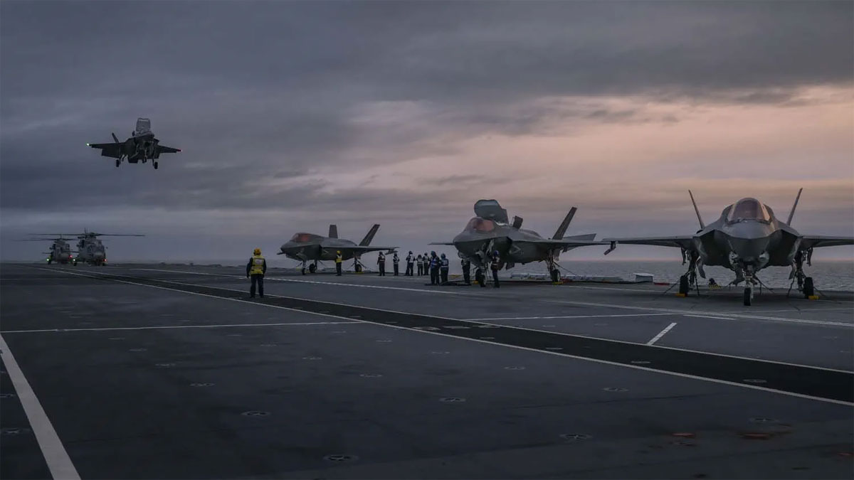Ison-Britannian merivoimien 809 Naval Air Squadronin ja RAF:n Squadron 617 Dambustersin F-35B -hävittäjät tukeutuvat harjoituksessa HMS Prince of Wales -lentotukialukselle. Kyseessä on ensimmäinen kerta lähes 15 vuoteen, kun Ison-Britannian merivoimien laivueen nopeat hävittäjät tukeutuvat kuningaskunnan omalle lentotukialukselle.