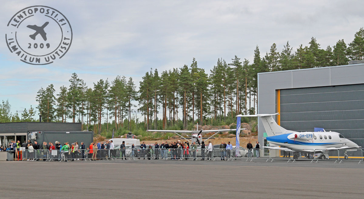 Torstaina 1. syyskuuta oli jälleen suuri päivä Redstone Aeron lentokentällä, kun arviolta 300 ilmailun ammattilaista, puhujaa ja näytteilleasettajaa saapui vasta valmistuneen lentokonehallin suojiin Tech Runway -tapahtumaan. Uudelle pidennetylle kiitotielle laskeutui ensimmäisenä Tech Runway -tapahtuman maanäyttelyyn saapunut Suomen Ilmailuopiston Embraer Phenom 100 -suihkukone.