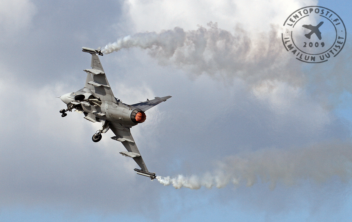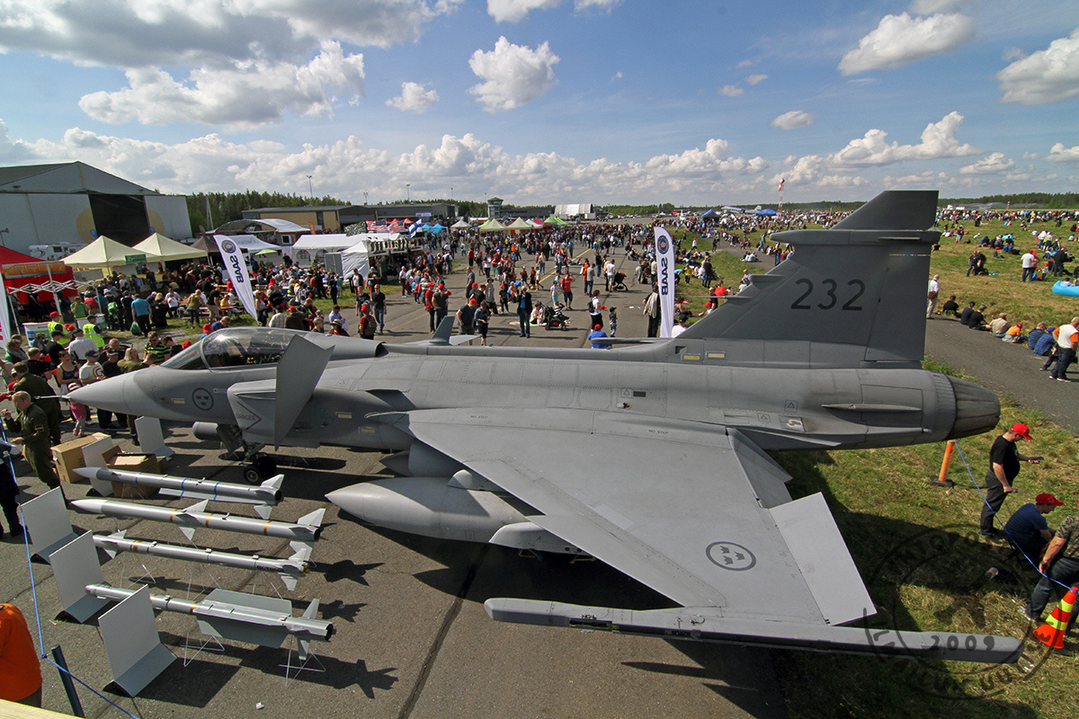 Saabin nyky-Gripenin suorituskykyä esitteli taivaalla Ruotsin ilmavoimien kapteeni Henrik Björling. Ruotsalaiskoneen esityksessä nähtiin hävittäjäesiintyjien lyhin kiitotienmittaus niin lentoonlähdössä kuin laskussakin. Esityksessä käytettiin myös soihtuja.