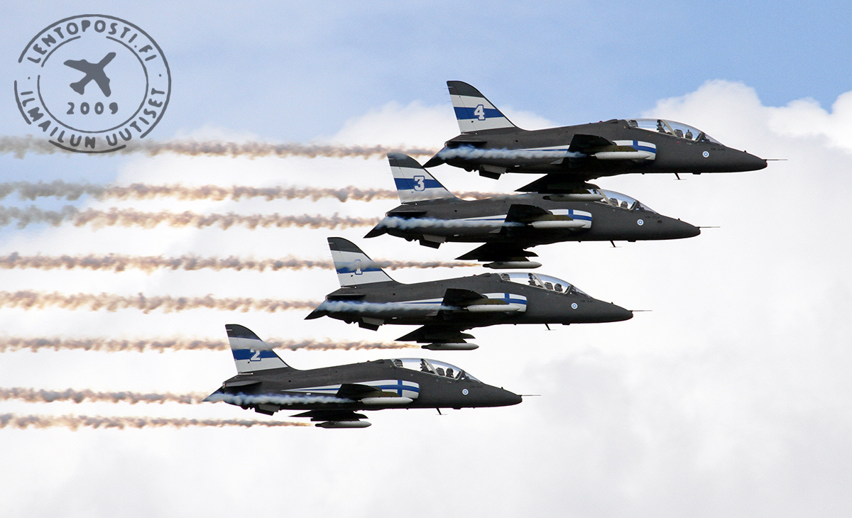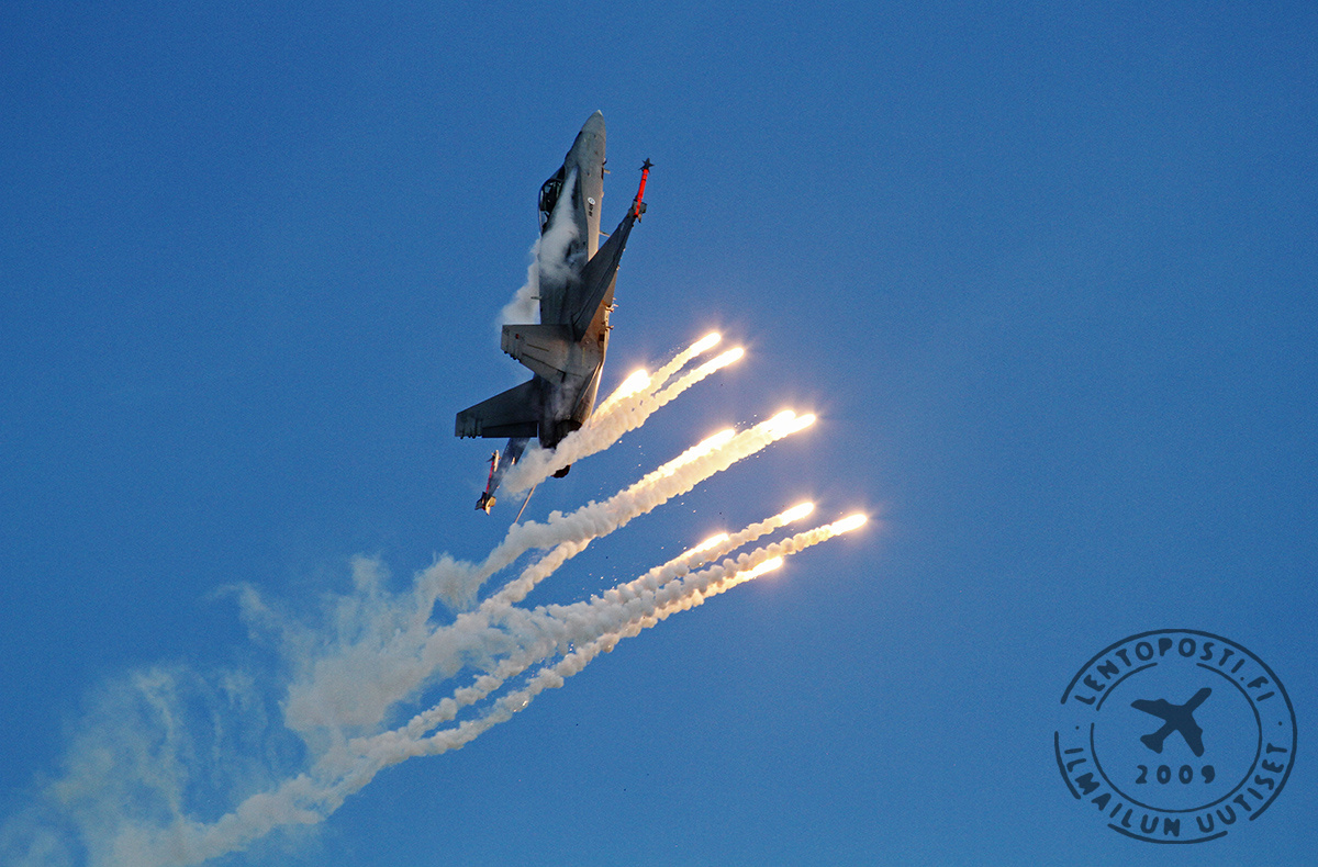 Esityslennolla nähtiin laajasti koneen suorituskykyä hiipivästä saapumisliusta repivään nousukaartoon ja lopuksi vielä näyttävä soihdutus. Midnight Hawks lensi Finlandian säestyksessä Suomi 100 -juhlavuoden sinivalkoisissa erikoisväreissä. Myös pyöriväsiipiskalustoa nähtiin ilmassa, kun Rajavartiolaitoksen Agusta Bell AB414, maavoimien NH Industries NH90 ja Hughes MD500 esittelivät kykyjään. NH90-lennolla ei tällä kertaa käytetty soihtuheitteitä, joita esiteltiin mm. Helsingissä lippujuhlapäivän ja Suomen Ilmailuliiton lentonäytöksissä. Lentonäytös jatkuu sunnuntaina 11. kesäkuuta ja taivaalla nähdään mm. Ilmavoimien F/A-18C Hornet, Osastotaitolentoryhmä Midnight Hawks sekä Saab JAS 39C Gripen ja paljon muuta.