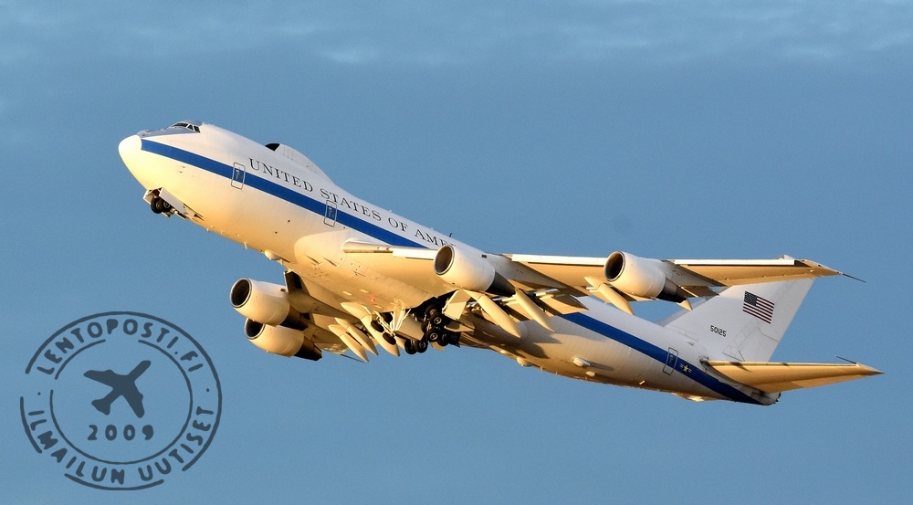 Puolustusministeri Mattis lähti Suomesta tiistaina iltapäivällä. E-4B nousi Helsinki-Vantaan kiitotieltä 22R kohti syystalven laskevaa aurinkoa (otsikkokuvassa, klikkaa suuremmaksi). Harvinainen lentokonevieras luonnollisesti kiinnosti ja sen lähtöä odottamaan oli saapunut runsaasti ilmailuvalokuvaajia. Suomesta kone lensi Brysseliin. Project Nightwatch E-4B on projekti Nightwatchin tuote. Tavoitteena oli kehittää moderni lentävä komentokeskus, joka mahdollistaa sotavoimien korkeimman johdon toiminnan myös Yhdysvaltoihin kohdistuvan ydinhyökkäyksen ollessa käynnissä ja sen jälkeen. Siksi E-4B tunnetaan usein nimellä Tuomiopäivänkone.