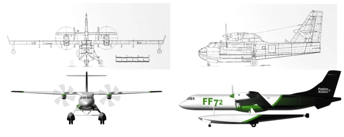 Positive Aviation kehittää kellukkeilla varustettua FF72-sammutuslentokonemallia Toulousen Blagnacissa, jossa sijaitsee myös ATR:n tuotantolinjasto. Hankkeessa kehitetään ja integroidaan tarvittavat modifikaatiot käytettyyn ATR 72-600 -potkuriturbiinikoneeseen. Muutostyöt tarkoittavat lähinnä kellukkeiden sekä vedenotto- ja pudotusjärjestelmien asentamista ja rakenteiden vahvistamista. Ensimmäisen FF72-X1 -amfibiokoneen odotetaan lentävän vuonna 2026. Tavoitteena on tuoda FF72 -sammutuslentokone vaihtoehtoisena ratkaisuna markkinoille jo vuonna 2028.