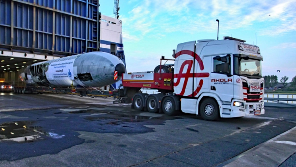 Purkutöiden valmistuttua kone siirrettiin ensin rullausteitä pitkin pois lentokenttäalueelta ja edelleen yleisiä teitä pitkin Arlandasta Kapellskärin satamaan. Koneen runko, korkeusvakaajat sekä sivuvakaaja ja siivet lastattiin 18. elokuuta neljään Ahola Specialin erikoiskuljetusrekkaan sekä kahteen tavalliseen rekkaan.